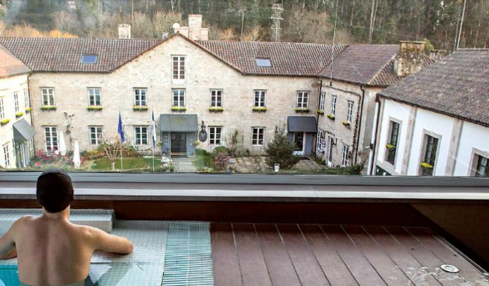 Em 2003, quando José Ramón Lorenzo e Luísa Garcia Gil decidiram comprar uma antiga fábrica de papel de 1792, sabiam muito bem o hotel que queriam. Luísa, arquiteta com experiência em restaurar casas, e José, do ramo do imobiliário. Ao longo do século xix, este foi espaço de várias indústrias, tirando partido da passagem do pequeno rio Sar. Começou com o papel, negócio que viu o seu fim quando os ingleses inventaram a máquina a vapor. Também os têxteis tiveram o seu tempo, como a madeira e a pedra, chegando até a ser fábrica de gelo e por fim ruína. Foram precisos seis anos de obras e papelada para, em junho de 2009, abrir A Quinta da Auga, uma hotel com a garantia Relais et Châteaux, rodeado de natureza quase selvagem de um bosque mas com um interior cuidado que dá a sensação de se estar em casa: a decoração é clássica, combinando antiguidades e detalhes modernos. A casa tem um total de 55 quartos (51 standard, de trinta metros quadrados, e quatro suites de 100). Todos com muitas janelas: era aqui que em tempos secava o papel. O conforto começa na cama – com roupa de marca portuguesa –, conta Luísa Lorenzo, filha do casal e diretora.