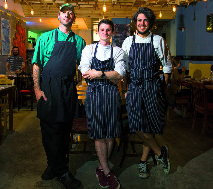 «Não tentamos fazer este ou aquele estilo de comida, apenas coisas feitas com o coração», diz Adam. No sentido figurado e no literal, já que as miudezas são uma das peculiaridades da comida portuguesa que mais lhe agradam. Thomas sublinha a comfort food como linha-mestra da carta, desenhada a seis mãos e mudada com a regularidade que os produtos disponíveis no mercado o ditarem.