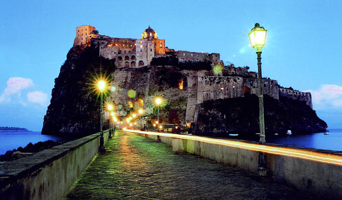 É conhecido como o antigo Castelo Aragonês e é considerado o mais impressionante monumento desta zona de Itália. Localiza-se numa ilha e no interior há igrejas, pátios, ruas antigas, terraços e arcadas com vista sobre o mar. A partir de 2200 euros por noite e capacidade para quatro pessoas.