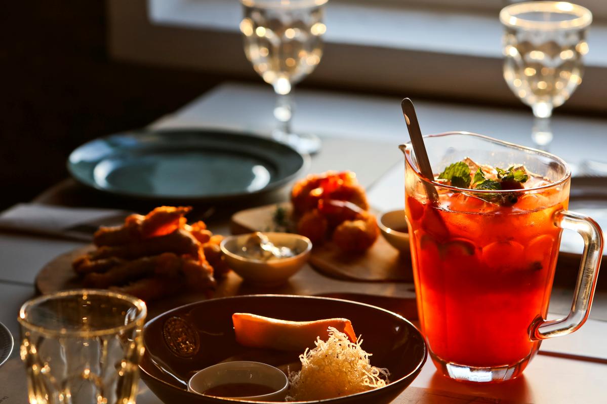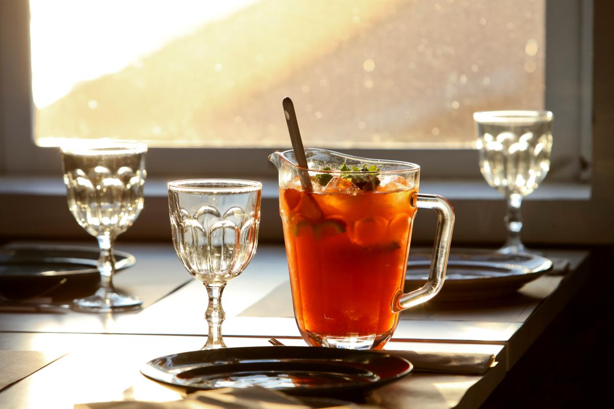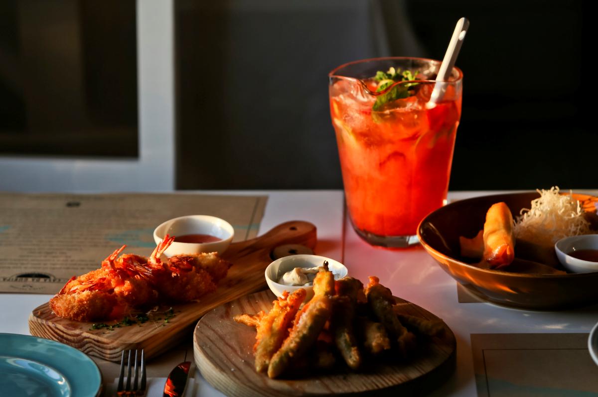 Há um par de pratos de carne na carta, mas mencionemos apenas o prego, pela excentricidade: leva queijo da Ilha e serve-se em bolo do caco. O demais é peixe, marisco em variações, tradicionais ou de fusão, todas confecionadas e apresentadas com graça e esmerado sabor. O caldo do mar «é a imagem da casa», sublinha Manuela, mas outros pratos, mesmo os mais simples como os peixinhos da horta, também cuidam da reputação da Guripa. Há vários petiscos com marisco, mas também polvo à galega e pimentos de Padrón. Nos pratos mais fartos, destacam-se o arroz do mar e o risotto de camarão e lima. Convém seguir o conselho inscrito no menu – «Barriga cheia, pé na areia» – apenas depois de provar umas das sobremesas, como as natas do céu ou a mousse de lima, que tem criado admiradores. No rés-do-chão, por onde se entra, a barra serve de café para a vizinhança, para servir petiscos e ainda uma dúzia de gins e mojitos. E então, sim, pé na praia.