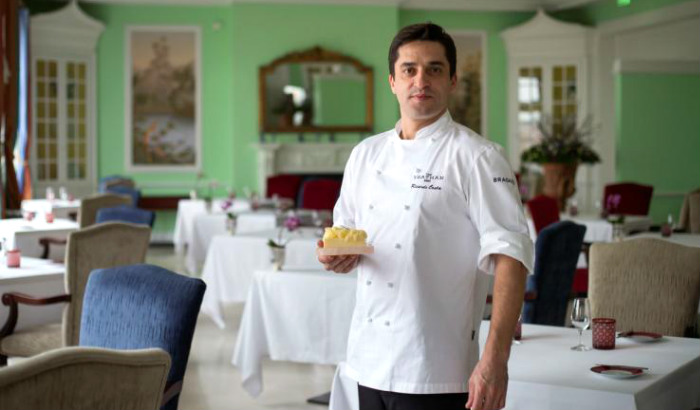 «Produtos de estação, uma cozinha mais ligeira», explica o chef, que, com a alteração do horário do restaurante gastronómico – a Sala Orangerie passa a acolher um segundo restaurante, aberto ao almoço, com menu executivo, e ao jantar com escolhas à carta –, espera ter «mais tempo para pensar no conceito e a equipa mais disponível» para o mise en place, «para crescer e fazer coisas diferentes». O novo menu tem dez pratos e «um início mais informal», para «comer à mão», explica Ricardo Costa, com snacks como a sanduíche de beringela ou a petinga de escabeche, os legumes de Amarante , os chocos com tinta, pescados em Aveiro, ou as ostras – gordinhas, igualmente de Aveiro e «praticamente iguais às francesas Gillardeau».