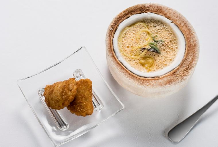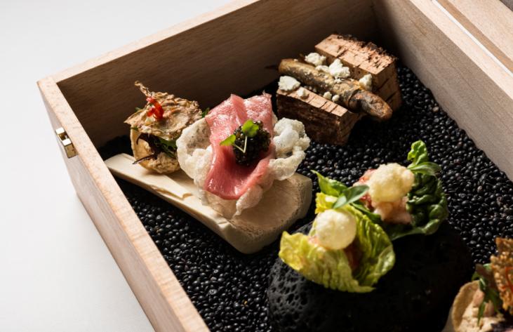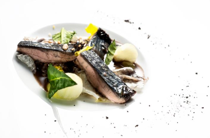 «Produtos de estação, uma cozinha mais ligeira», explica o chef, que, com a alteração do horário do restaurante gastronómico – a Sala Orangerie passa a acolher um segundo restaurante, aberto ao almoço, com menu executivo, e ao jantar com escolhas à carta –, espera ter «mais tempo para pensar no conceito e a equipa mais disponível» para o mise en place, «para crescer e fazer coisas diferentes». O novo menu tem dez pratos e «um início mais informal», para «comer à mão», explica Ricardo Costa, com snacks como a sanduíche de beringela ou a petinga de escabeche, os legumes de Amarante , os chocos com tinta, pescados em Aveiro, ou as ostras – gordinhas, igualmente de Aveiro e «praticamente iguais às francesas Gillardeau».