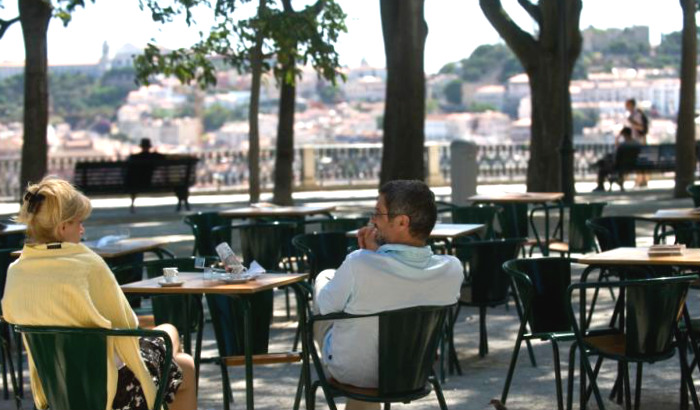 4. Jardim São Pedro de Alcântara: É um jardim, um miradouro, para muitos uma das melhores vistas panorâmicas de Lisboa. Fica junto ao Bairro Alto, o epicentro da boémia, mas basta olhar em frente para ver outro mundo: a colina do castelo, Alfama, o Martim Moniz, a Mouraria, a Baixa Pombalina, até o Tejo. É claro que um sítio como este não poderia deixar de ter um Quiosque com esplanada, onde não faltam algumas cadeiras de pano/espreguiçadeiras para que o conforto seja total. Está aberto diariamente até às duas da manhã. A partir das 18h00, a cerveja é sempre mais barata. No «piso» inferior, há outro quiosque, ainda mais recatado. (Foto Tiago Melo)