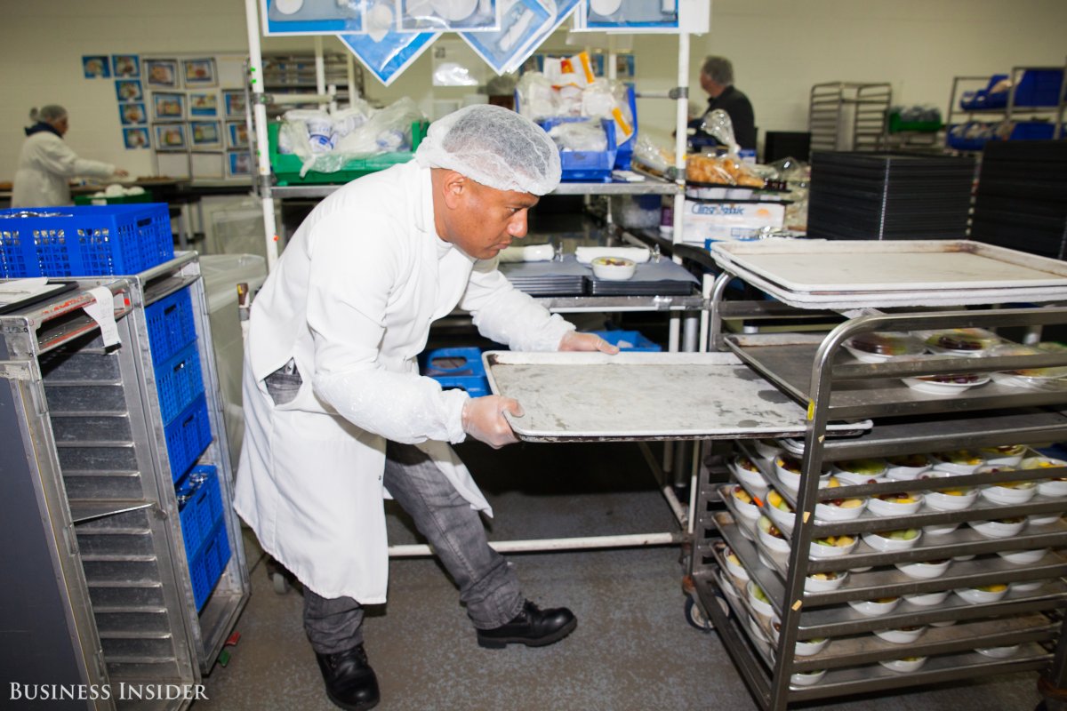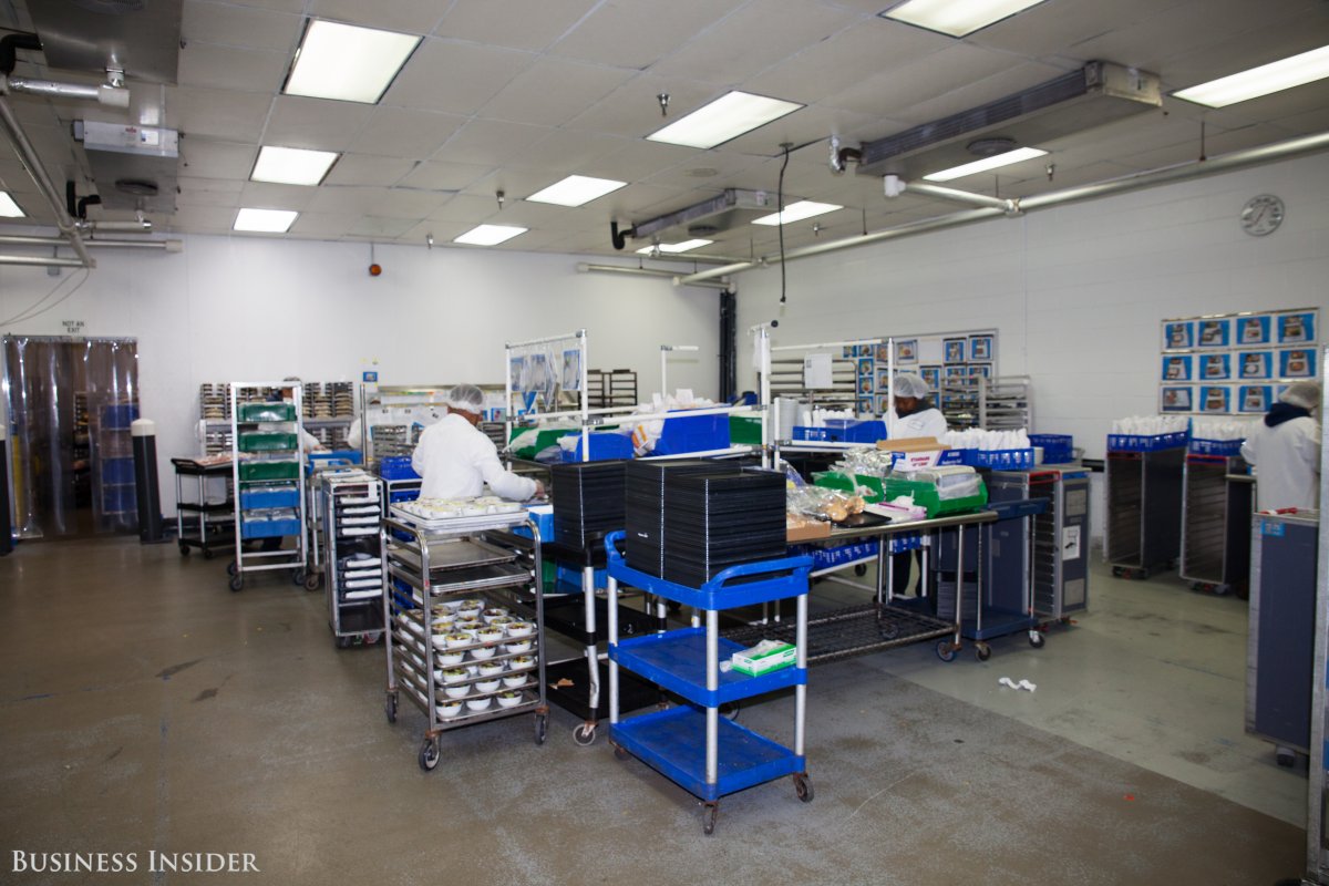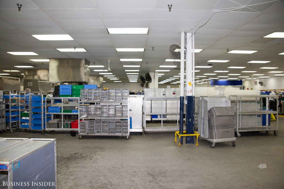 1. Uma equipa de jornalistas do Business Insider visitou o catering da companhia aérea norte-americana United Airlines, que fica perto do Aeroporto Internacional de Newark (Nova Jérsia - EUA), para conhecer o processo da «máquina», desde que os alimentos são cozinhados até à última etapa, quando são transportados para os aviões.