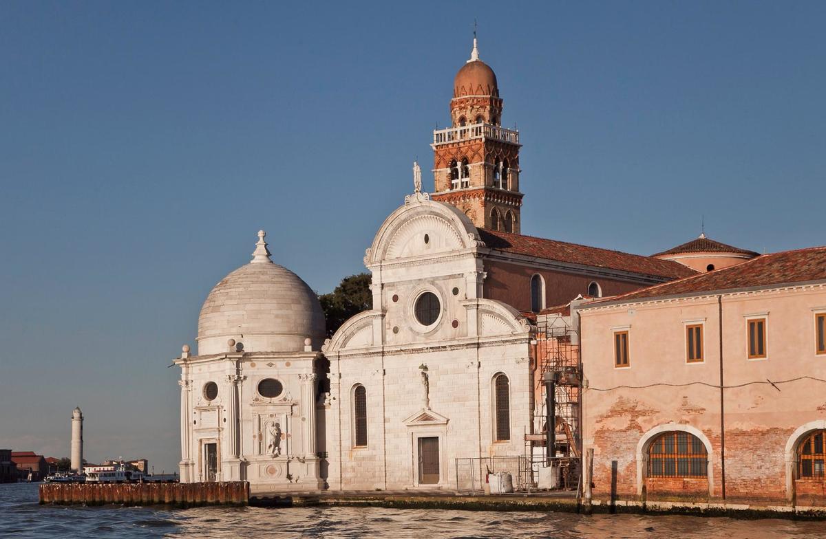 Mesmo em frente a São Marcos, entre o canal e a lagoa, avista-se San Giorgio Maggiore, um desses emblemas de Veneza que meio mundo reconhece mesmo sem nunca lá ter posto os pés. A ilha de forma pentagonal é tão pequena que se confunde com a majestosa igreja de Andreas Palladio, (desenhada em 1565, concluída 45 anos depois), uma das mais geniais recriações renascentistas da arquitetura clássica. No interior há várias obras-primas dos pintores Tintoretto e Bassano, mais recentemente acompanhadas por uma mão gigante que abençoa, suspensa das alturas da abóbada central. A escultura de aço do artista plástico Jaume Plensa, que se chama Together e junta carateres de oito alfabetos diferentes, foi premiada na Bienal no ano passado e está emprestada MSiacnhele até ver.
