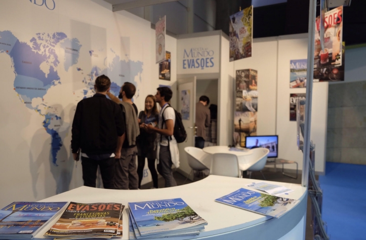 A Volta ao Mundo não é exceção. Tem a decorrer até domingo – o último dia de feira – uma campanha de assinaturas anual com 40% de desconto, em papel e digital, por apenas 34,99 euros. Estamos no Pavilhão 3, o Internacional, junto à Índia. Temos também algumas edições para oferecer, um mapa-mundo de parede a parede onde cabem os nossos sonhos de viagem.