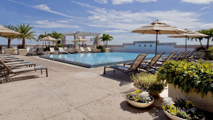 A piscina fica no Health Club do hotel e é um dos segredos que a maioria dos passageiros desconhece. O acesso ao centro de fitness custa cerca de 13 dólares.