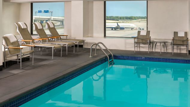 As horas no aeroporto não têm de ser aborrecidas. Esqueça os lounges privados das companhias aéreas com comida e bebida – já se imaginou a dar um mergulho com vista para as pistas de aterragem?