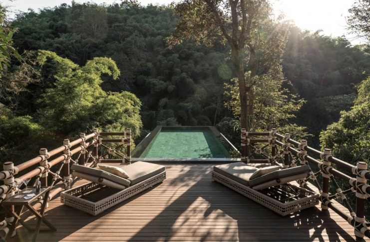 Fica no Triângulo Dourado – região que faz fronteiras entre a Tailândia, Birmânia e Laos – e oferece uma experiência de acampamento de luxo: os lodges estão envolvidos com a natureza, à volta é possível interagir com alguns elefantes – que vivem no seu habitat, garantem –, ou até fazer caminhadas por florestas de bamboo. Mas acima de tudo é possível descansar sem se privar de nada. Até há wi-fi. (Preço por noite: 2364 euros)