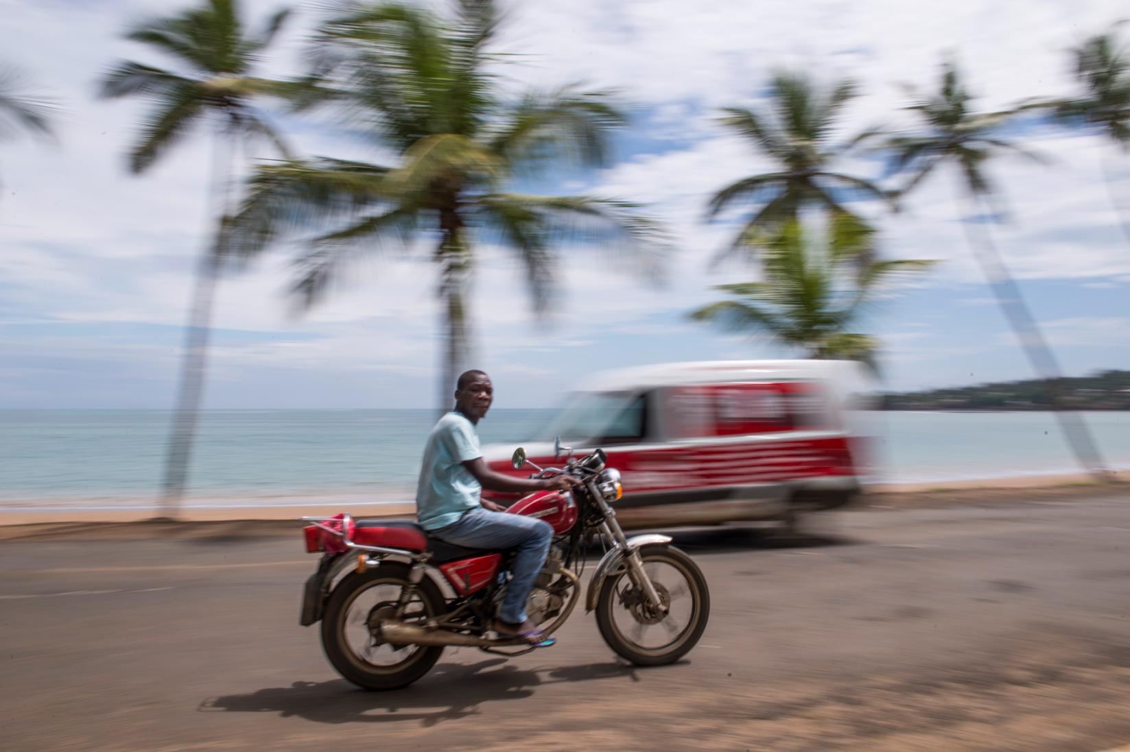 A cada encontro inesperado, vamos tendo a certeza que são as pessoas que mais nos marcam nestas ilhas. O caminho pela estrada continua. Sentados na parte de trás da carrinha, com a janela entreaberta, admiramos o que se vê passar. E apetece parar em cada uma das barracas de fruta para ouvir mais histórias. As buzinas das motos que nos ultrapassam, crianças a correr na berma, calor, kizomba no rádio, mulheres que levam alguidares na cabeça e seus vestidos coloridos. É um dia normal em São Tomé.