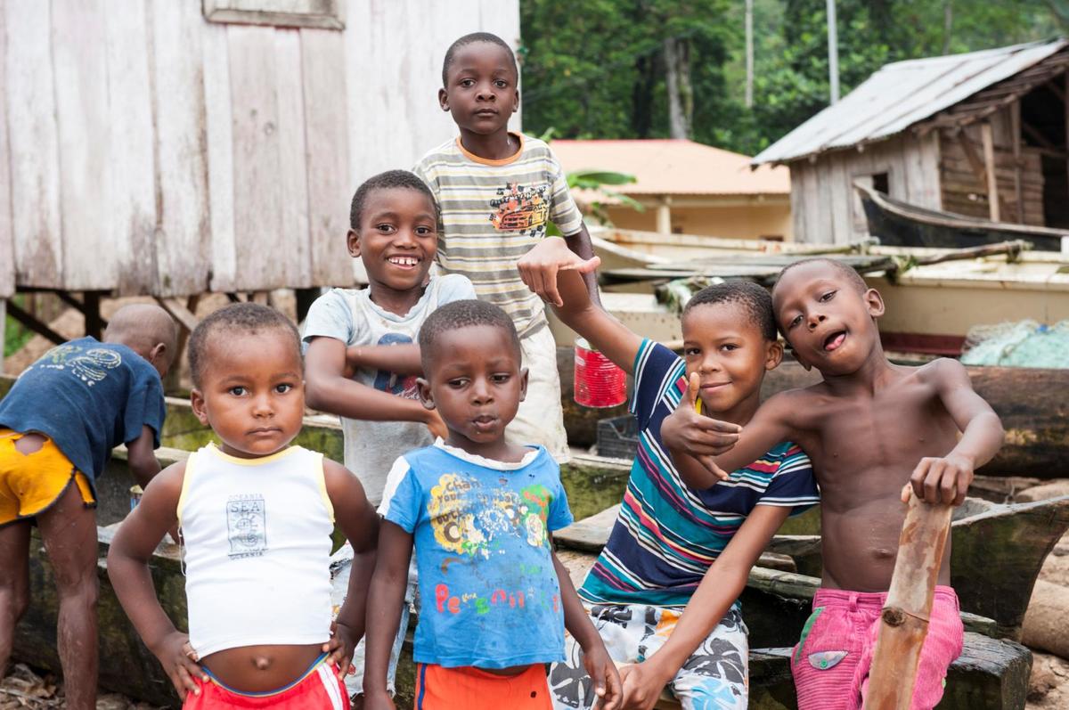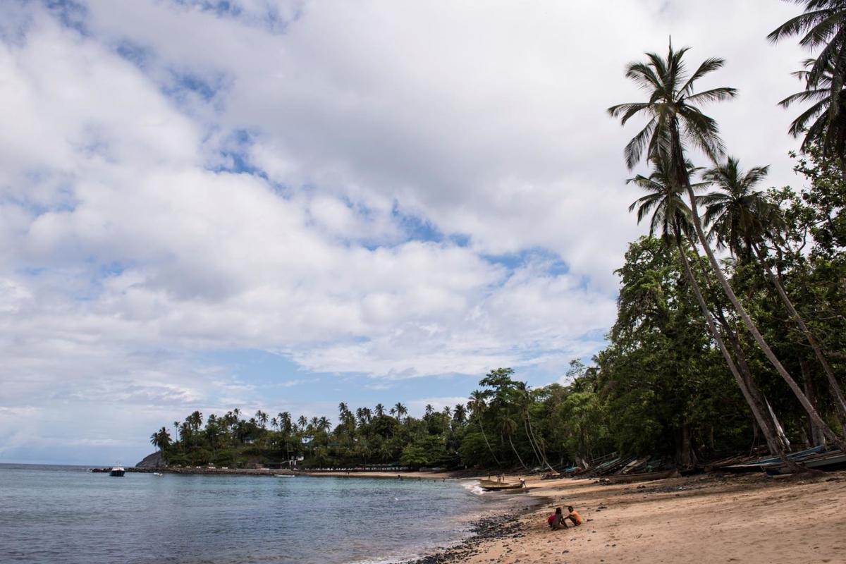 Saímos do aeroporto na direção oposta à cidade. Pelo caminho de terra batida, os ziguezagues, a cortar a densa vegetação que esconde o céu, estamos no único carro a fazer o trajeto. Cruzamo-nos com algumas crianças a brincar na berma. Há uma dúzia de casas e outra de habitantes. Apenas 4% da população do país vive no Príncipe – pouco mais de sete mil habitantes.