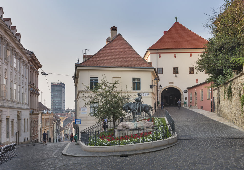 Antes, há que passar pela imponente catedral, seguir para o colorido mercado Dolac, onde frutas e flores pontuam entre as mais variadas mercadorias, passar por um beco chamado Krvavi, cuja tradução é qualquer coisa como Ponte Sangrenta, ligação entre as antigas Gradec e Kaptol e palco de lutas mais ou menos violentas entre as gentes de uma e outra colinas, para subir a íngreme Radićeva, que leva à única antiga porta preservada de acesso à antiga Gradec, a Porta de Pedra (Kamenita vrata), onde debaixo do arco uma representação da Virgem Maria, milagrosamente salva de um incêndio em 1731, é lugar de peregrinação e pedidos à ajuda divina.