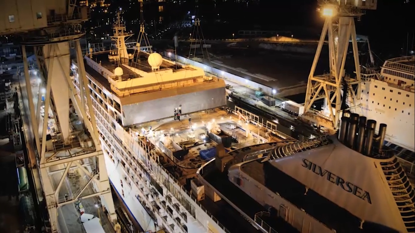 A remodelação do navio Silver Spirit, com mais de 36,000 toneladas, decorre nos estaleiros da construtora naval Fincantieri Shipyard, em Palermo, Itália. O plano para a extensão do navio conta com o trabalho de 500 trabalhadores experientes, e vai requerer aproximadamente 450,000 horas de mão-de-obra.