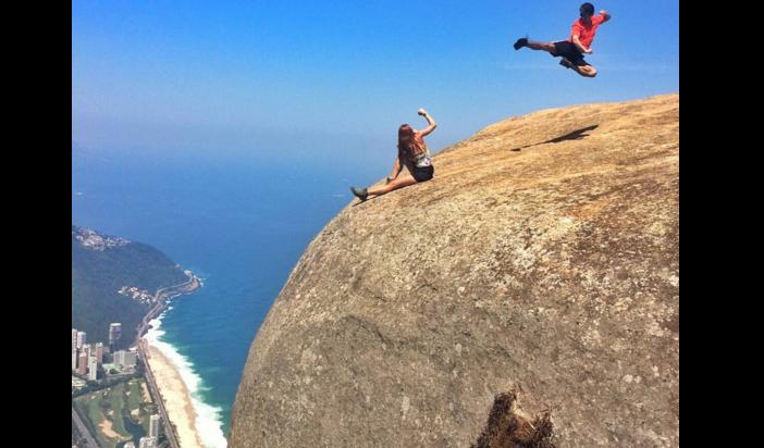 Na maior parte das imagens, a perspetiva é enganadora. Os viajantes estão pendurados, mas não se vê que estão a poucos metros do chão. Há, depois, os que se sentam mesmo no limite do precipício…