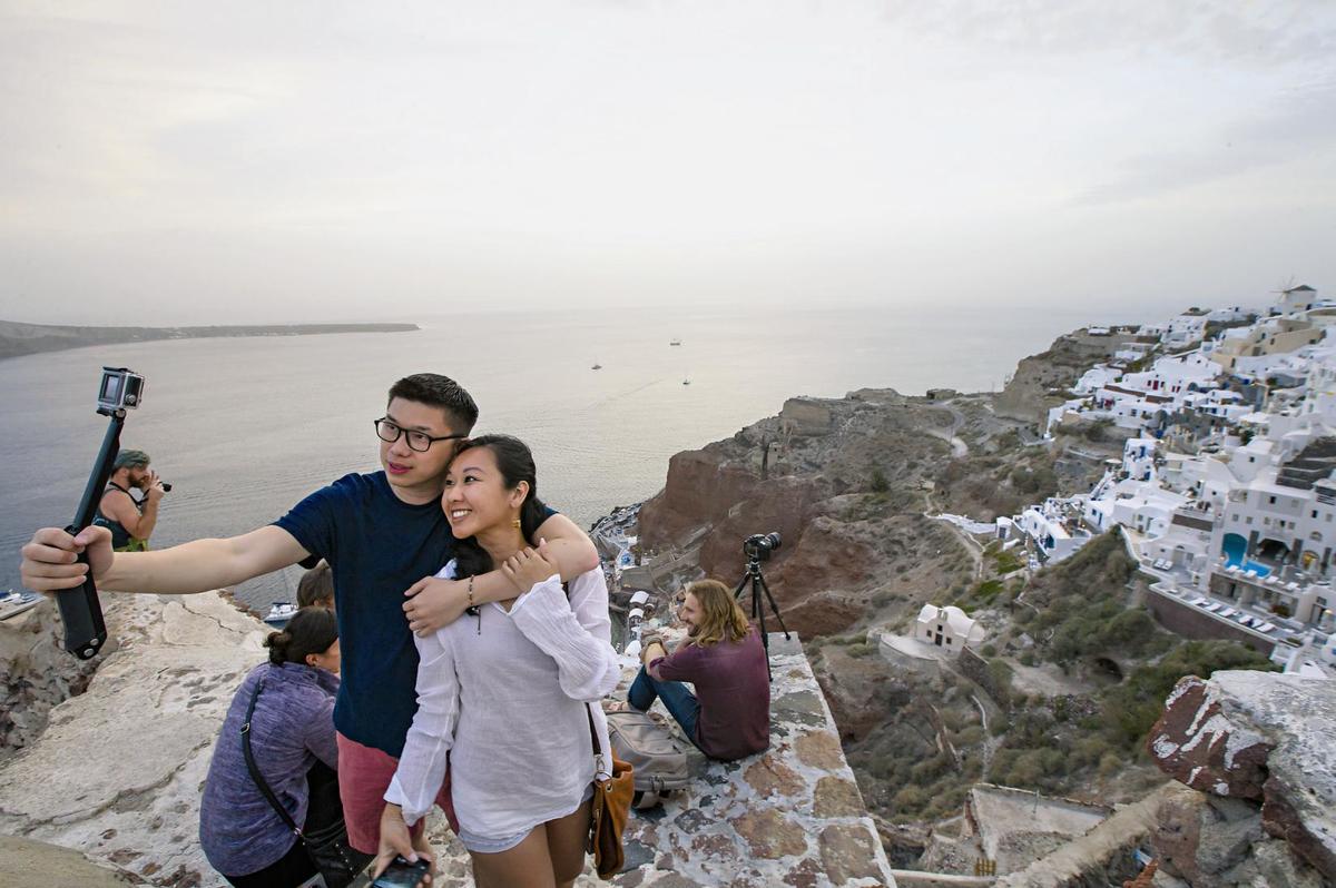 A ilha tem uma vibração de energia que não conheço em parte alguma. Provavelmente tem que ver mesmo com o facto, de que não podemos fugir nem desviar o olhar – está mesmo na nossa frente todos os dias –, de que a morte está sempre a observar-nos». Sentado ao balcão do bar está Yiorgos Hatziyannakis, 70 anos, o dono do Selene, que chegou à ilha em 1975 de férias e nunca mais a deixou. «Apaixonei-me pela ilha. Na altura era mais selvagem, havia muitas praias desertas, não havia a construção que há agora. O vulcão era para mim um desafio e estou sempre à espera que entre em erupção», assinala. E medo? «Isso seria ter medo de viver. Quando se toma a decisão de viver em Santorini tem de se ter essa consciência, que aqui a vida é para ser vivida todos os dias. Santorini está viva, move-se, as cores mudam, tem um vulcão ativo. E é assim a vida também. É assim que se é feliz», diz. Fala apaixonadamente e encolhe os ombros quando remata: «Mas nada disto é possível absorver em poucos dias…»