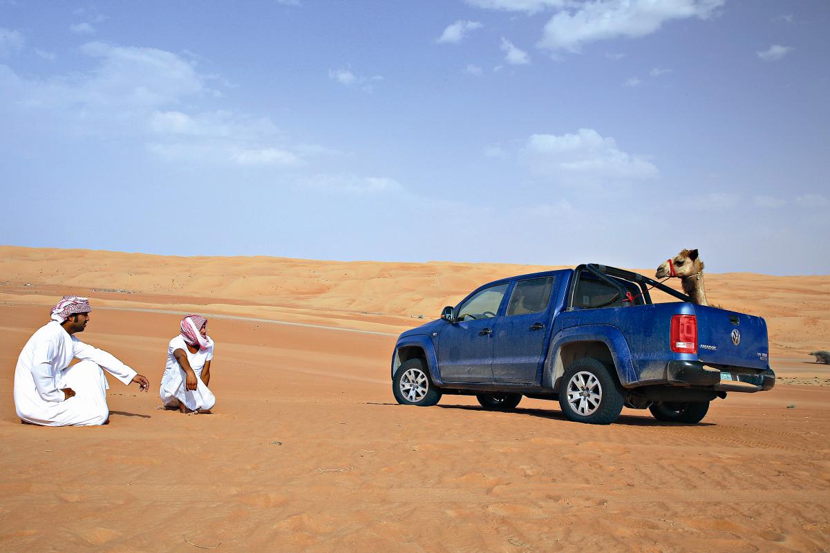 Calados os potentes – e renovados – motores da Amarok, finalizados os exercícios de condução na areia e descidas a pique de dunas com mais de 20 metros, ouve-se à volta e não há nada para escutar. Só a respiração ofegante provocada pelos quase 40 graus e pela adrenalina de mais uma viagem que está quase a chegar ao fim, ali no deserto de Wahiba. (…)