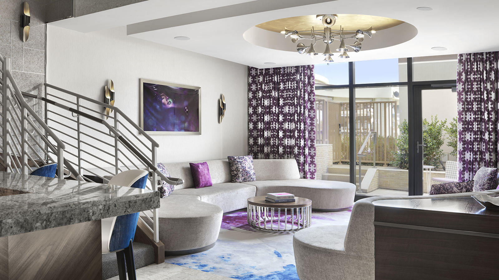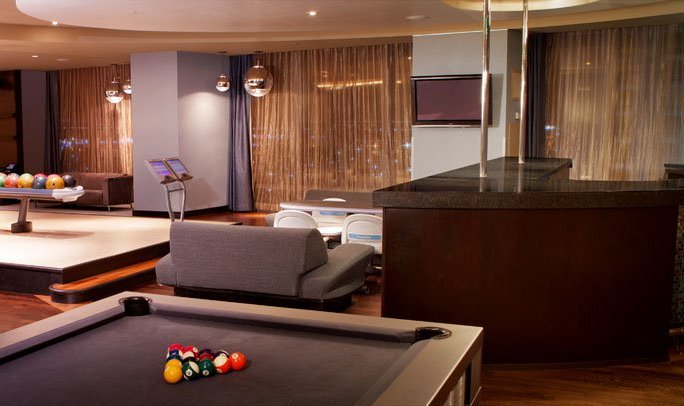 Com cinema, terraço privativo e banheira de hidromassagem, este bungallow de três andares, exclusivo para adultos, é uma das suítes mais elegantes de Las Vegas. Além disso, oferece um recurso que nenhuma outra suíte n The Strip pode oferecer - um clube de dia localizado literalmente a poucos passos da sua cama.