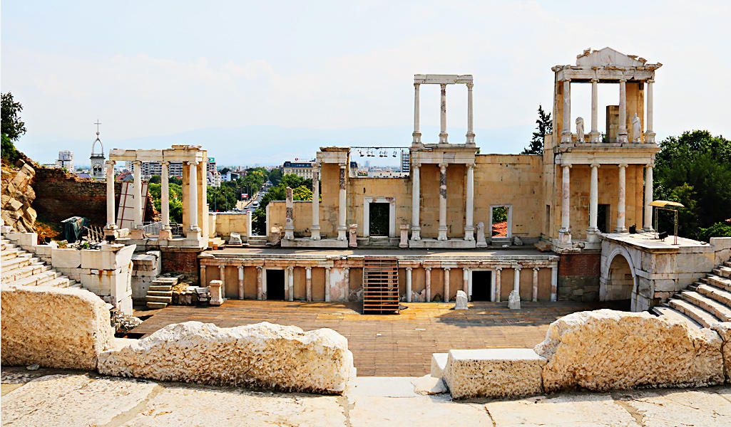 Numa colina próxima subimos até ao ex‑líbris da cidade, um dos teatros romanos mais bem preservados do mundo, o Teatro Romano de Plovdiv, cujo anfiteatro permite uma vista deslumbrante sobre a cidade, sendo mais interessante ao entardecer. Se tiver tempo e sorte, procure conseguir bilhetes para um dos muitos espetáculos que vão acontecendo naquele espaço. Descendo a colina e chegando ao centro histórico, deparamo‑nos com outro legado romano, o Estádio de Filipolis, um dos maiores edifícios dos Balcãs, construído pelo imperador Adriano. Tinha capacidade para 30 mil espetadores. Plovdiv mostra uma história com mais de seis mil anos, muito antes de Roma ou de Atenas, o que faz dela uma das cidades continuamente habitadas mais antigas da Europa.