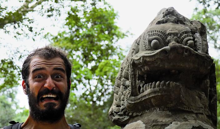 Foi mesmo de moto, recordam, que tiveram alguns dos episódios mais caricatos da viagem, nomeadamente no Laos, onde Renato teve o infortúnio de atropelar um pintainho. «Não íamos a mais de 50 km/h quando, de repente, um grupo de oito ou dez pintainhos saiu disparado para o meio da rua. Só tive tempo de meter pé e mão aos travões, mas nem tentei desviar‑me para evitar uma queda.» Um dos animais não resistiu e Renato, condoído, voltou para trás, perguntando a uma senhora de quem eram os pintainhos. Por gestos, percebeu que o dono estaria no campo e deixou 10 mil LAK (cerca de um euro) para que a mulher lhos entregasse. Ainda a viu depositar solenemente a carcaça do animal à entrada de uma casa.