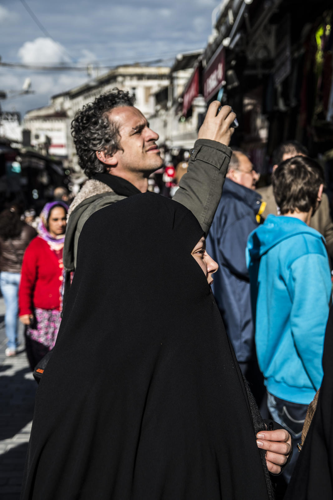 Saindo por uma das portas do Grande Bazar, chega-se sempre a ruas de lojas. Ao ar livre, as pessoas parecem esforçar-se por fazer mais barulho, a música das lojas grita mais. Ainda assim, em horas certas, de surpresa, as vozes dos altifalantes das mesquitas calam toda a gente, sobrepõem-se a tudo e é como se ressoassem do interior do peito. Além disso, há a loucura caleidoscópica de todo o tipo de objetos à venda: lojas inteiras de acessórios brilhantes para casamentos e batizados, lojas de vestidos de gala incrivelmente espampanantes, sumo de romã em cada esquina e os manequins mais sinistros a ser apreciados por mulheres completamente cobertas pelo véu muçulmano ou com aspeto ocidental, de cabelo oxigenado, como chamas entre a multidão.