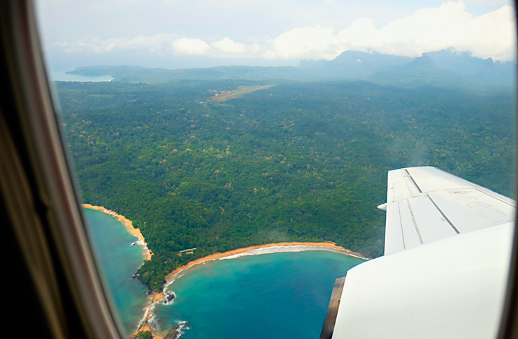 O avião vai perdendo altitude de forma rápida, furando o capacete de nuvens que já é uma imagem de marca deste arquipélago africano, um dos mais pequenos países do mundo. E é a bater as dez da manhã que os tons de verde e azul do mar começam a ser elogiados desde a janela do avião. Estamos a chegar ao Príncipe. E depressa vamos perceber por que razão a ilha foi declarada Reserva da Biosfera pela UNESCO em 2012.