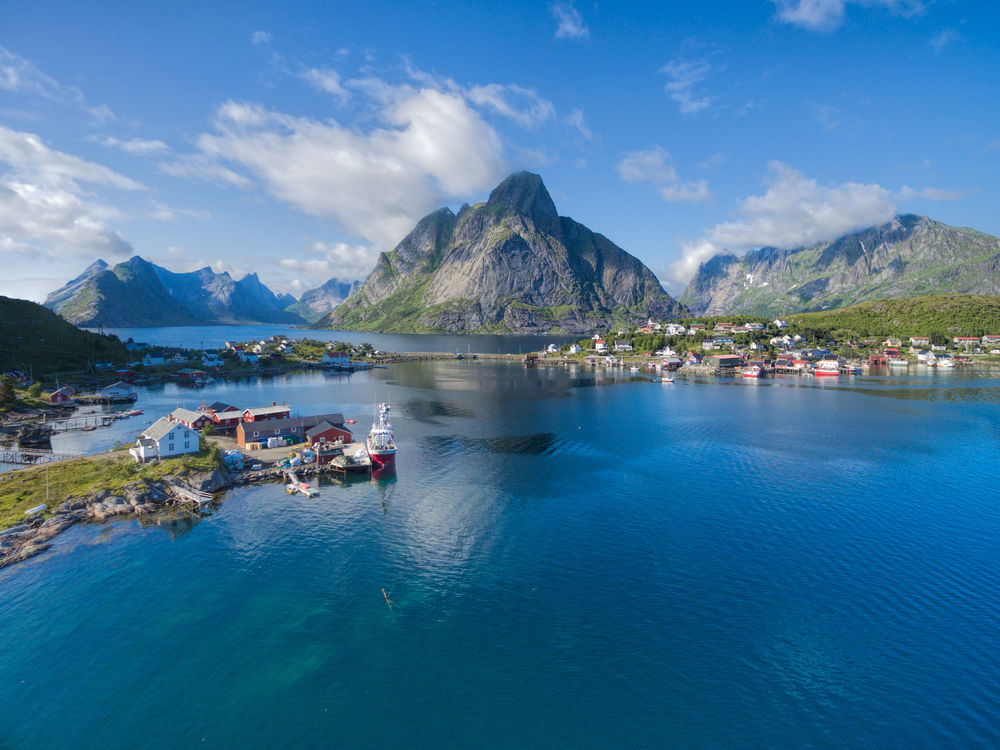 Na imagem, a pequena vila de Reine é o postal da ilha Moskenesøya, pelas casinhas coloridas e os fiordes que as rodeiam. E que por sua vez a ilha faz parte do arquipélago de Lofoten, bastante a norte da Noruega.