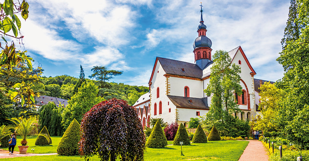 A menos de 20 quilómetros de Wiesbaden ergue-se o mais importante complexo medieval de Hessen: o Kloster Eberbach, mosteiro cisterciense fundado em 1136 por Bernhard von Clairvaux e desde sempre ligado ao vinho. Regido pelo mote ora et labora, foi-se transformando numa empresa de sucesso e na maior propriedade vinícola do país, antes de ser ocupado e saqueado durante a Guerra dos 30 Anos. No século XIX acabou convertido em prisão e asilo de gente insana. Só após a Segunda Guerra Mundial, com administração estatal, começaria a recuperar o velho fulgor.