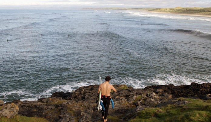 Apesar da temperatura o surf é cada vez mais popular na Escócia e spots como este já são bastante concorridos.