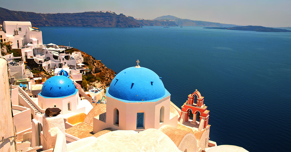 Para o final da viagem, mais uma pérola grega: Santorini. Metade dos postais que vemos das ilhas gregas são tirados em Mykonos, a outra metade aqui. É igualmente pequena, ainda mais do que Mykonos (73 km2), mas de origem vulcânica, o que lhe dá o encanto extra e ângulo que tanto fascina os fotógrafos. É ver a quantidade de telemóveis e máquinas a tentar enquadrar o casario branco, no topo, com o mar, os barcos e as outras pequenas ilhas, lá em baixo. Entre elas Nea Kameni. Santorini é, na verdade, um miniarquipélogo composto por cinco ilhas à volta do vulcão, estando a minúscula ilha de Nea Kameni no centro da caldeira. Vai‑se de barco, como sempre, sobe‑se até ao topo, pouco mais de cem metros, onde se avistam as cidades de Fira e Oia, as mais pitorescas, encavalitadas no topo da falésia. O solo é árido, vê‑se o fumo, está vivo. Ativo. O único vulcão ativo no mundo cuja cratera é no mar. Os relatos são de tragédia, uma das maiores erupções da história. No melhor e no pior, na Grécia não parece haver nada que não faça parte da história. Mas se na altura foi uma tragédia que destruiu por completo a vida em mais de metade do arquipélago, acabou por dar a forma, a cor, o relevo que tem hoje e que a transformaram na ilha mais visitada do país e uma das 15 mais visitadas do mundo.