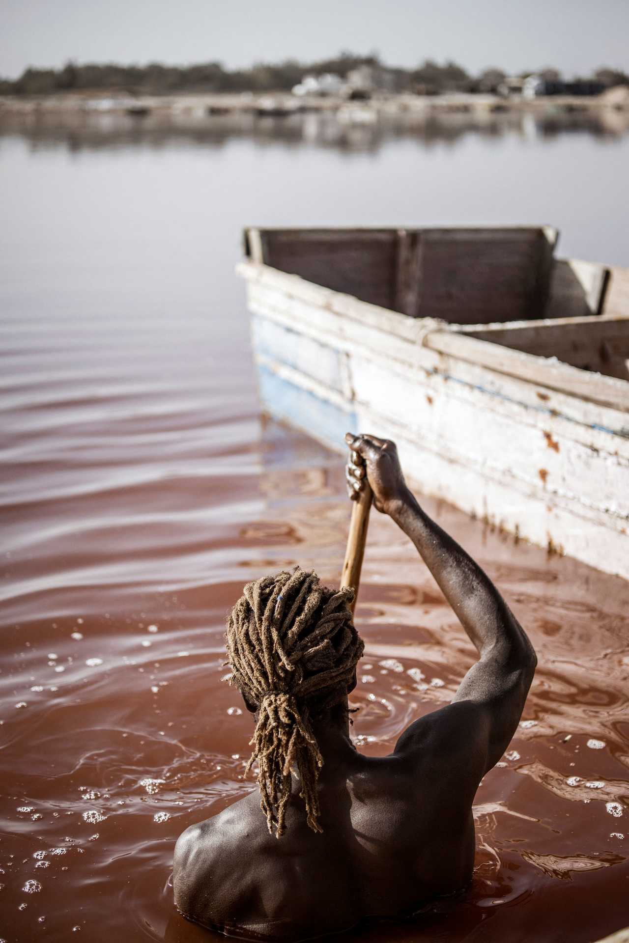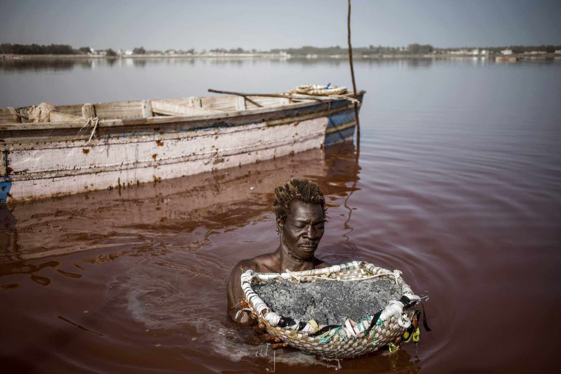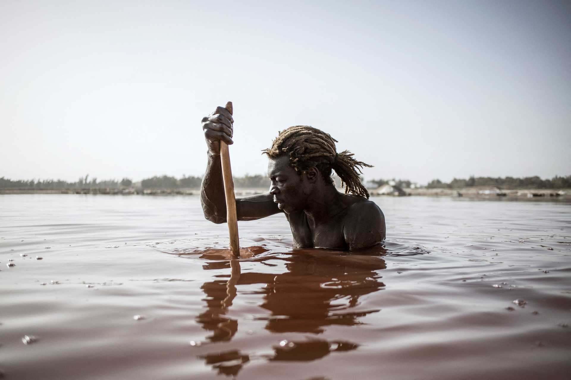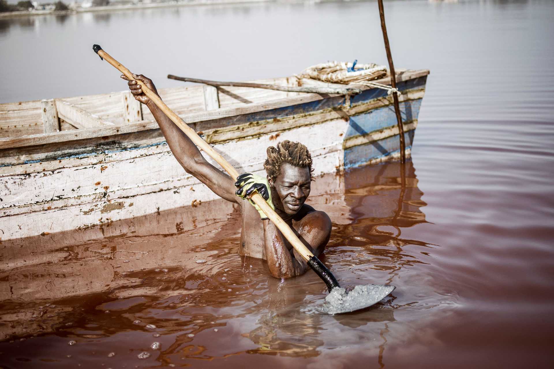 A recolha do sal é o dia-a-dia de Toure, um gambiano que fez do Lago Retba, ou Lago Rosa, no Senegal, o seu habitat natural. É um lago salgado apenas separado do Atlântico por um estreito corredor dunar, que ganhou tons rosa pela presença da alga salina Dunaliella. A salinidade da água chega aos 40% em algumas zonas e trabalhadores como Toure recolhem o sal com pás com que raspam o leito do lago, carregando-o para botes que depois descarregam nas margem, criando um espetáculo de contraste de cores. Um espetáculo tal que o lugar é cada vez mais procurado por turistas, havendo até guias dedicados. Uma reportagem fotográfica de Marco Longari, para a Agência France Presse.