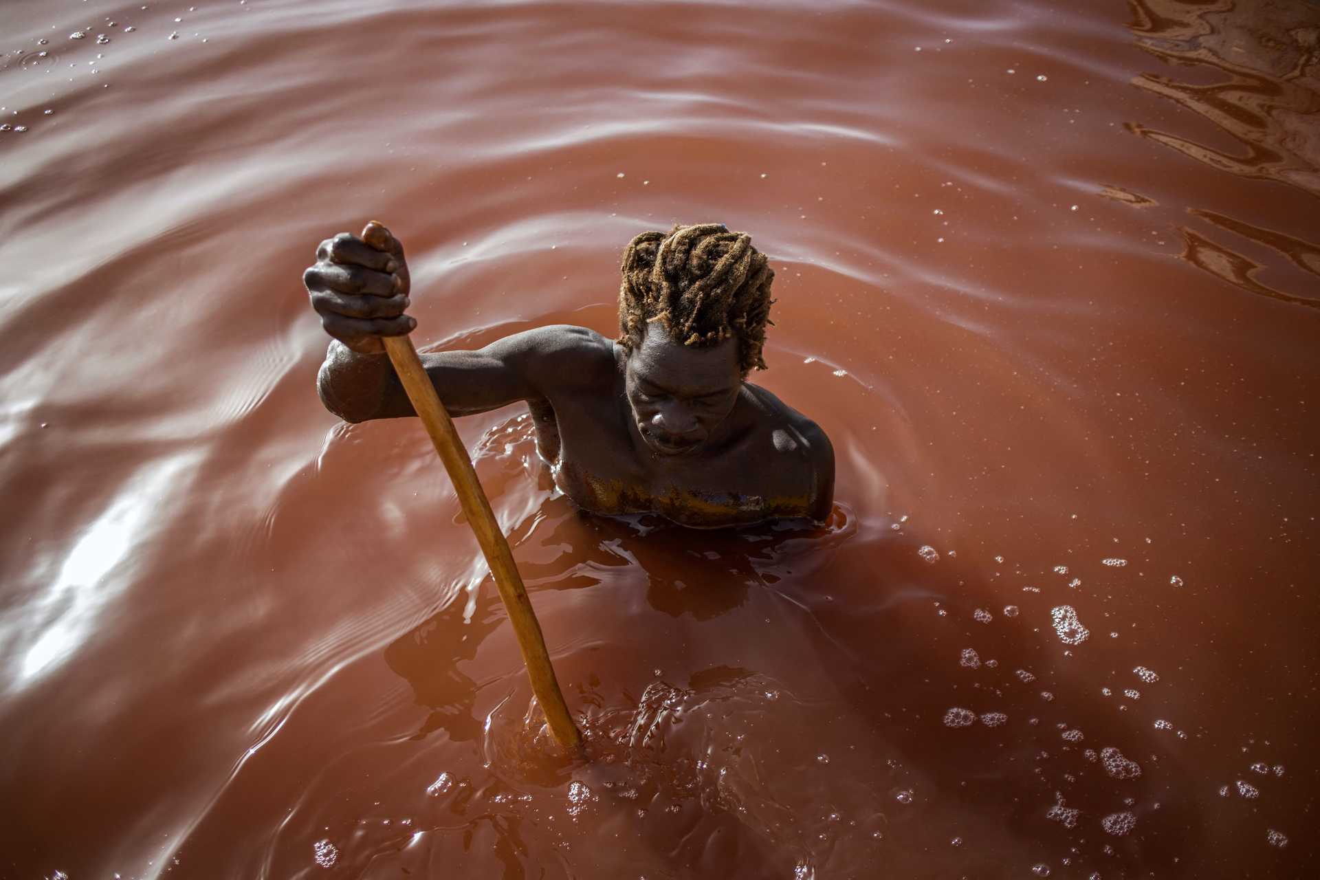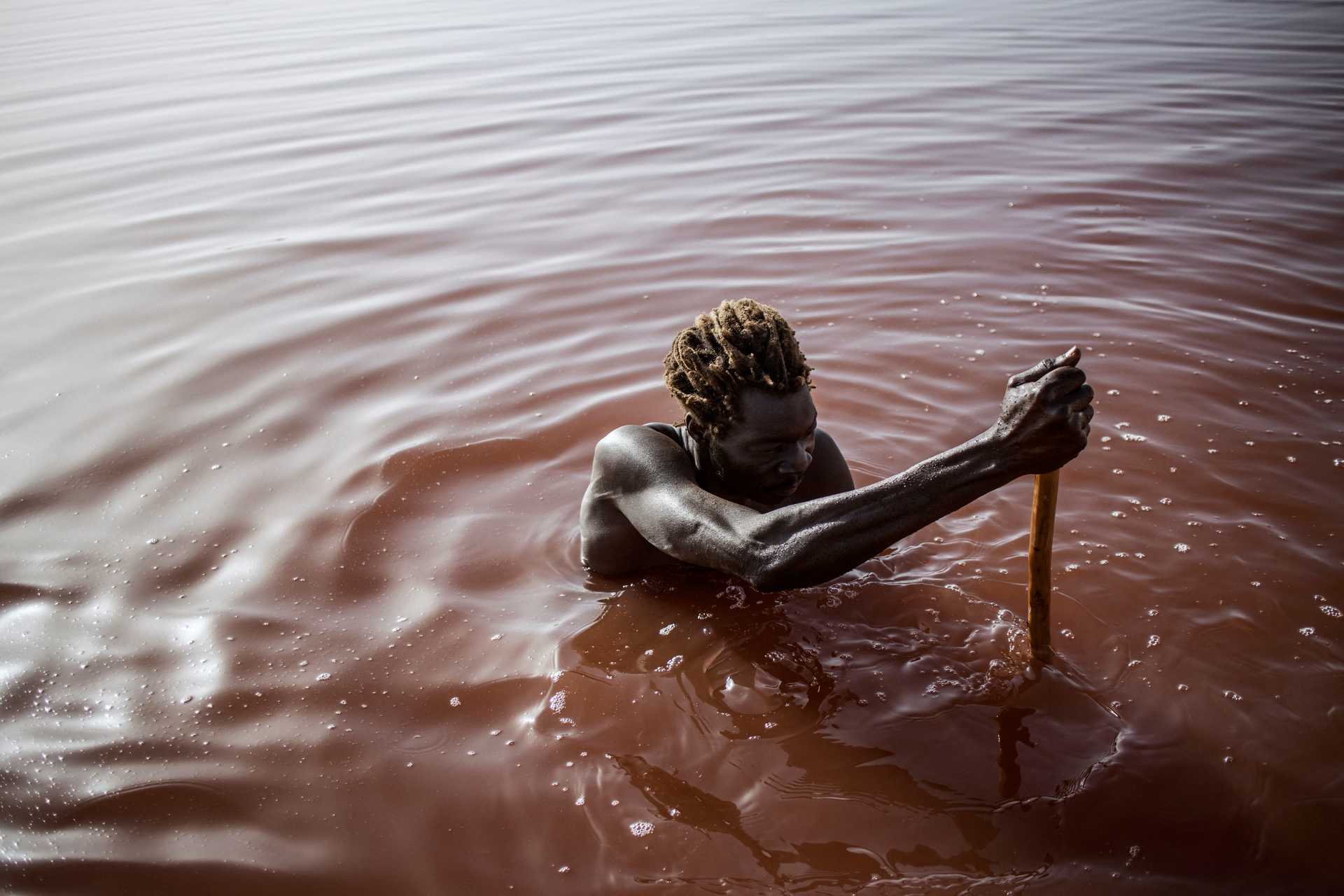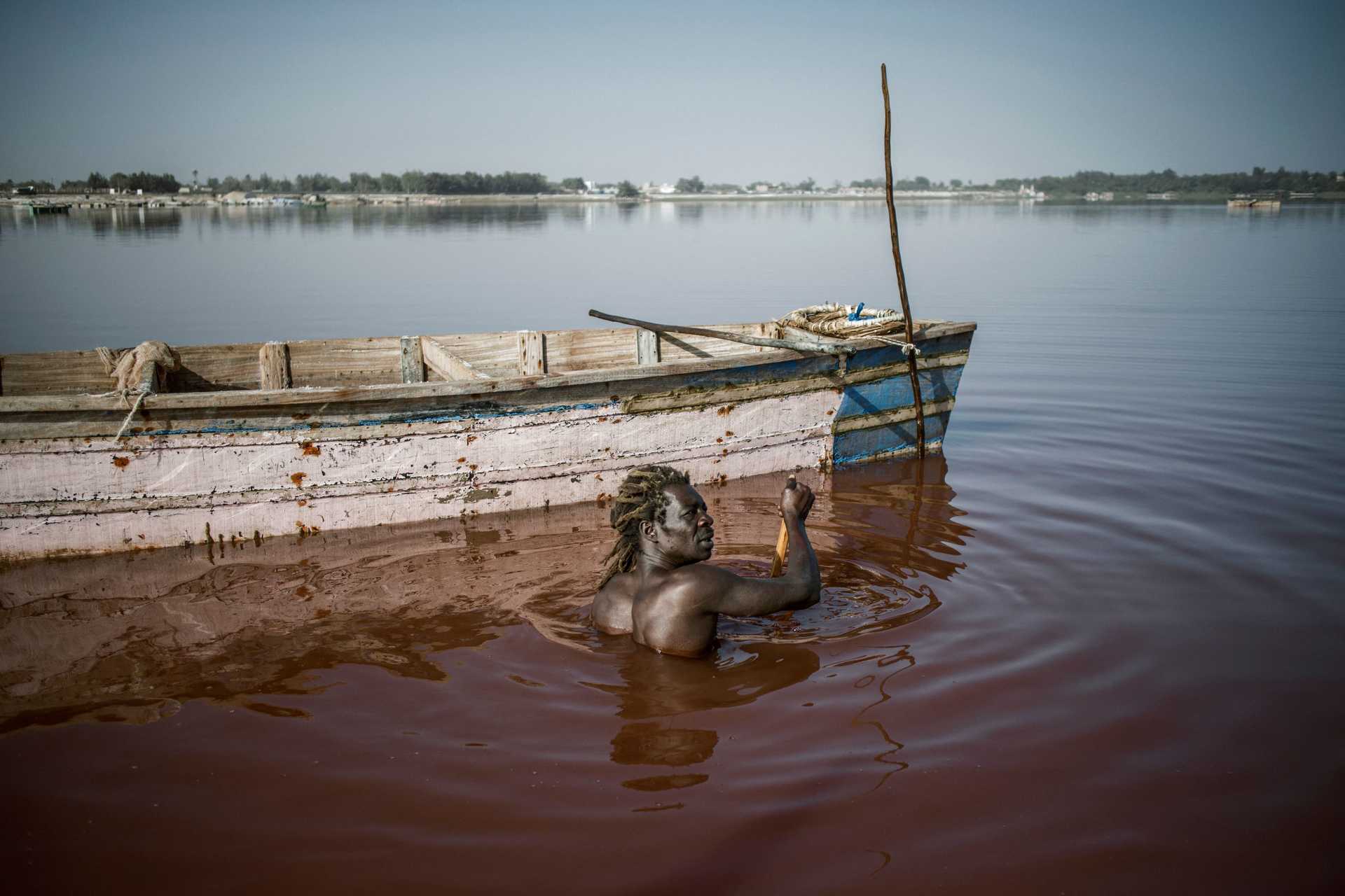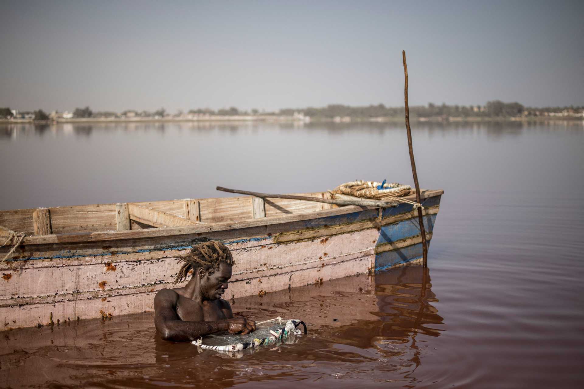 A recolha do sal é o dia-a-dia de Toure, um gambiano que fez do Lago Retba, ou Lago Rosa, no Senegal, o seu habitat natural. É um lago salgado apenas separado do Atlântico por um estreito corredor dunar, que ganhou tons rosa pela presença da alga salina Dunaliella. A salinidade da água chega aos 40% em algumas zonas e trabalhadores como Toure recolhem o sal com pás com que raspam o leito do lago, carregando-o para botes que depois descarregam nas margem, criando um espetáculo de contraste de cores. Um espetáculo tal que o lugar é cada vez mais procurado por turistas, havendo até guias dedicados. Uma reportagem fotográfica de Marco Longari, para a Agência France Presse.