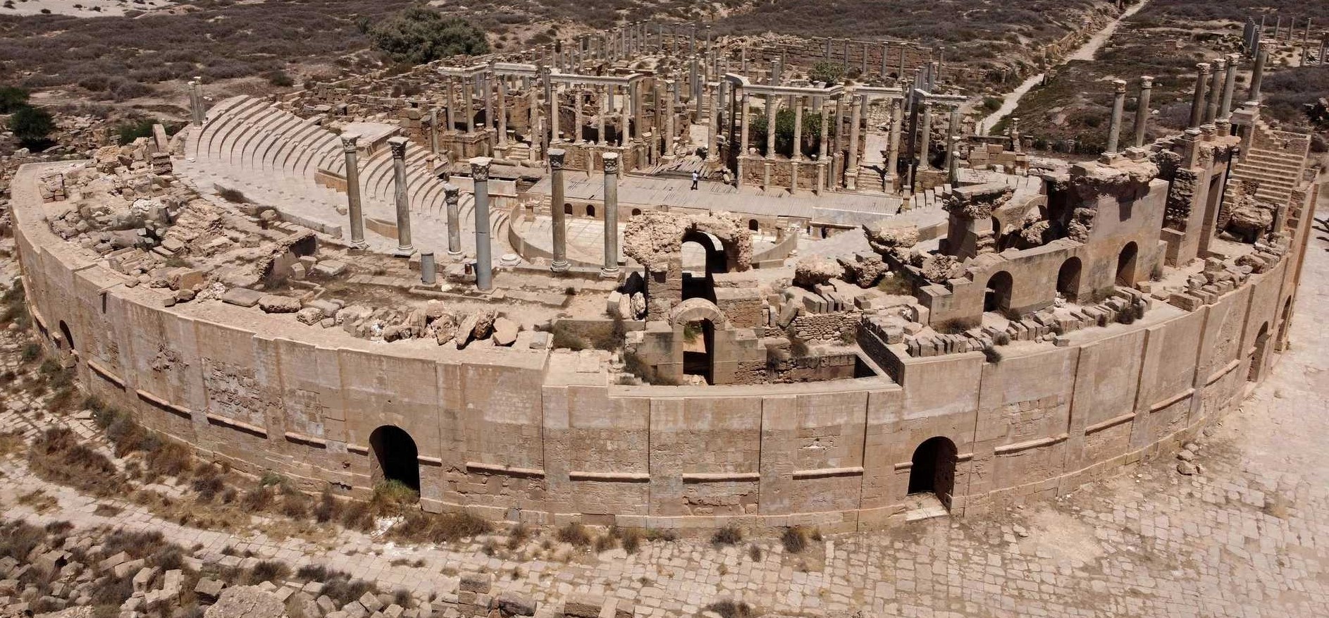 Apesar da violência que assolou a Líbia de 2011 até o cessar-fogo de 2020, Leptis Magna foi praticamente poupada dos combates.