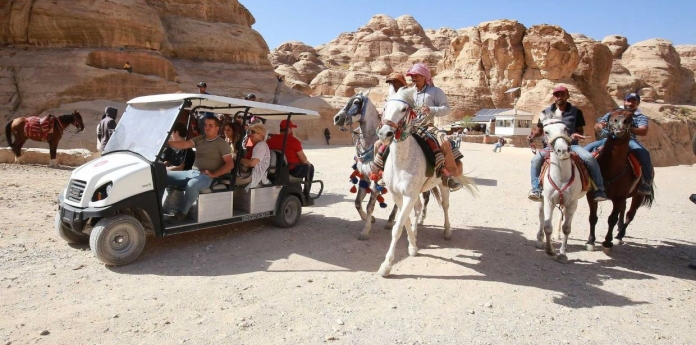 Para já, uma pequena frota de dez destas pequenas viaturas ecológicas atravessa o caminho que conduz à famosa capital dos Nabateus, que remonta ao século I AC.