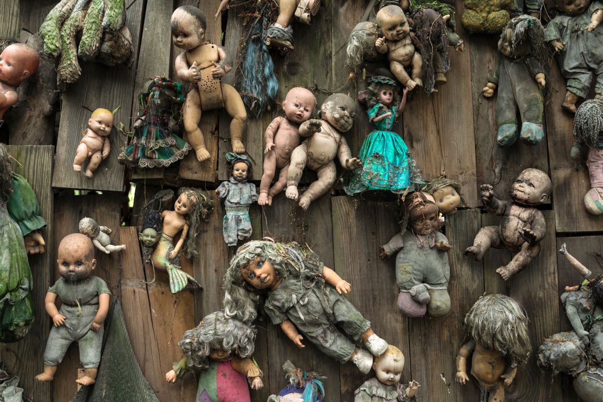 Um espaço cheio de bonecos desmembrados pendurados por toda a parte, autêntico templo de arte macabra.