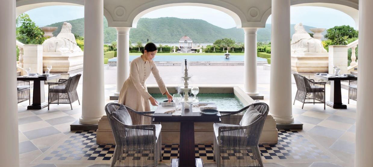 O legado real da região é ainda recuperado à mesa do Sawai Kitchen, o restaurante indiano do hotel, que reinventa receitas perdidas das casas reais com um toque de modernidade. No Harvest, propõe-se uma experiência gastronómica farm-to-table, com produtos provenientes das hortas da propriedade; e na escola de culinária Rasoi, os hóspedes podem participar na confeção dos pratos.