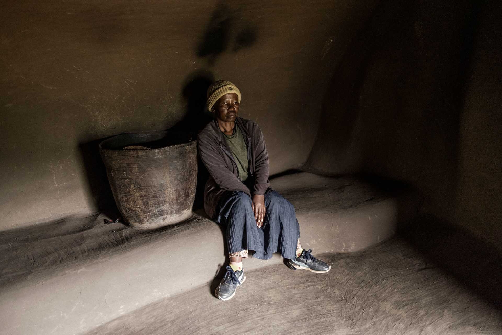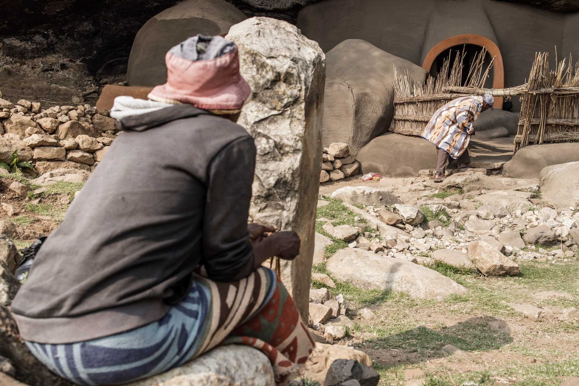 Mamotonosi Ntefane atarefa-se a limpar o pó a uma pele de animal. Tem 67 anos e não conhece outra casa além desta onde recebe a AFP: uma gruta com paredes de lama seca, igual à dos poucos vizinhos que teimam em manter-se em Kome, buracos na montanha transformados em abrigo há 200 anos.