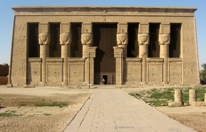 O Templo de Hathor (na foto) é um dos mais bem preservados do Egito. Situa-se a cerca de 500 quilómetros a sul do Cairo e abrigava o Zodíaco de Dendera, um mapa celestial exposto no Museu do Louvre, em Paris, desde 1922.