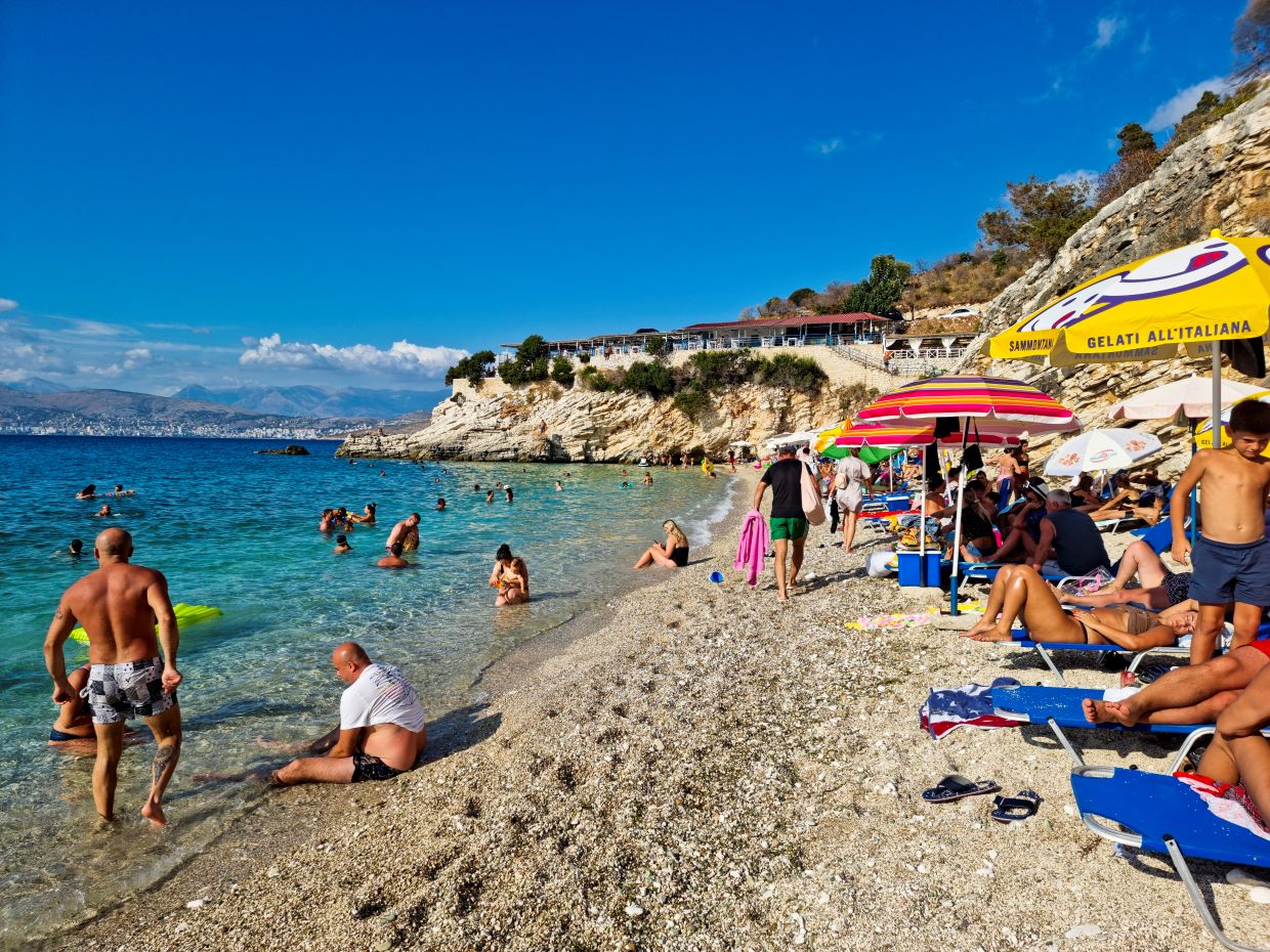 A riviera albanesa é abençoada por cristalinos azuis-turquesa e eternos por do sol em amarelos, laranjas e vermelhos quentes e fortes, uma pena que não sejam acompanhados pela areia delicada das praias portuguesas: não é fácil para quem tem os pés mais sensíveis, como eu.