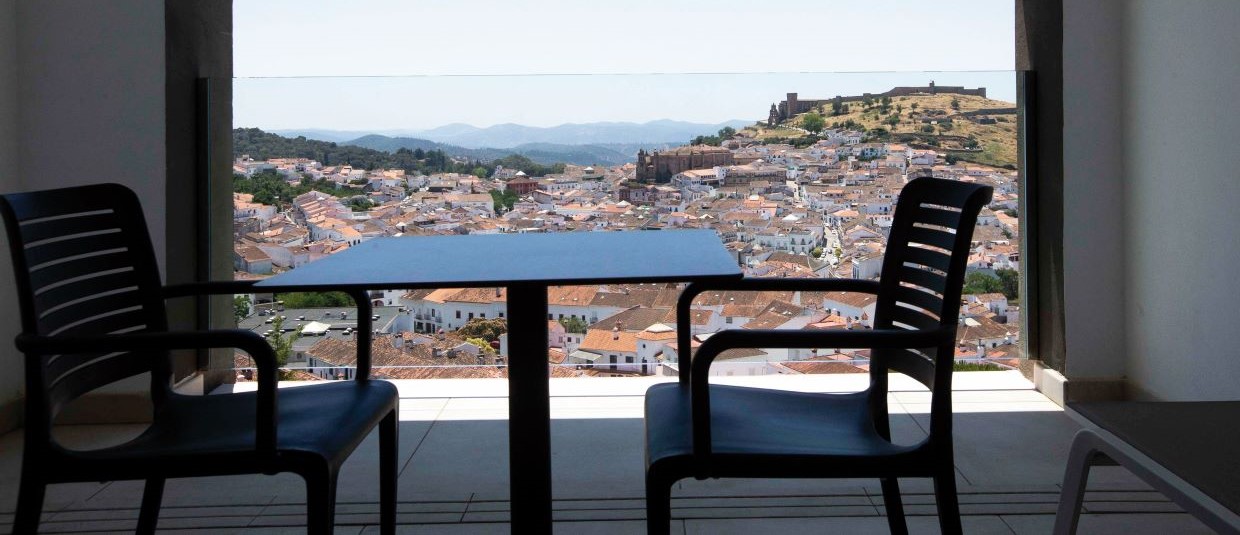 Localizado no norte da província de Huelva, trata-se de um quatro estrelas do portefólio Barceló, sobranceiro à vila de Aracena, um desses pueblos blancos que cobrem colinas por todo o interior da Andaluzia.