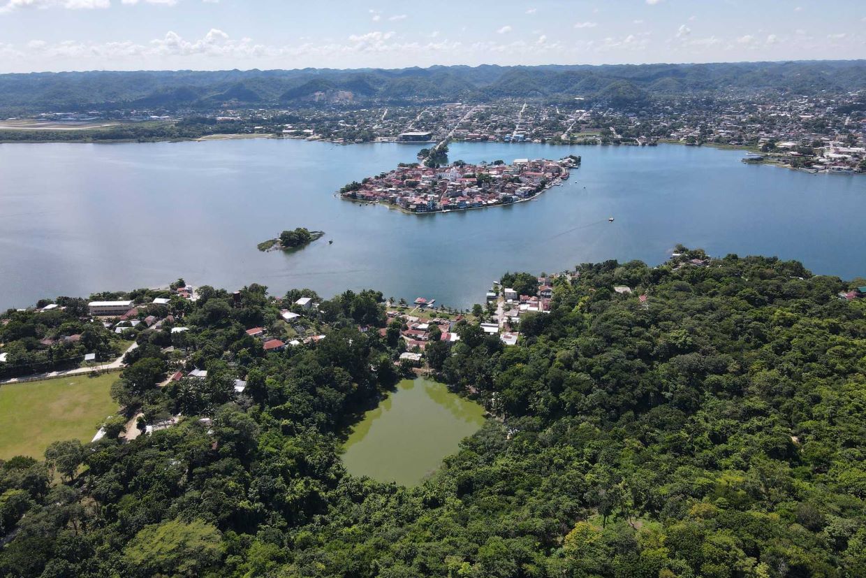 Grande parte dos edifícios em Tayasal estão enterrados sob terra e vegetação densa, dentro de uma área de sete quilómetros quadrados perto do Lago Peten Itza.