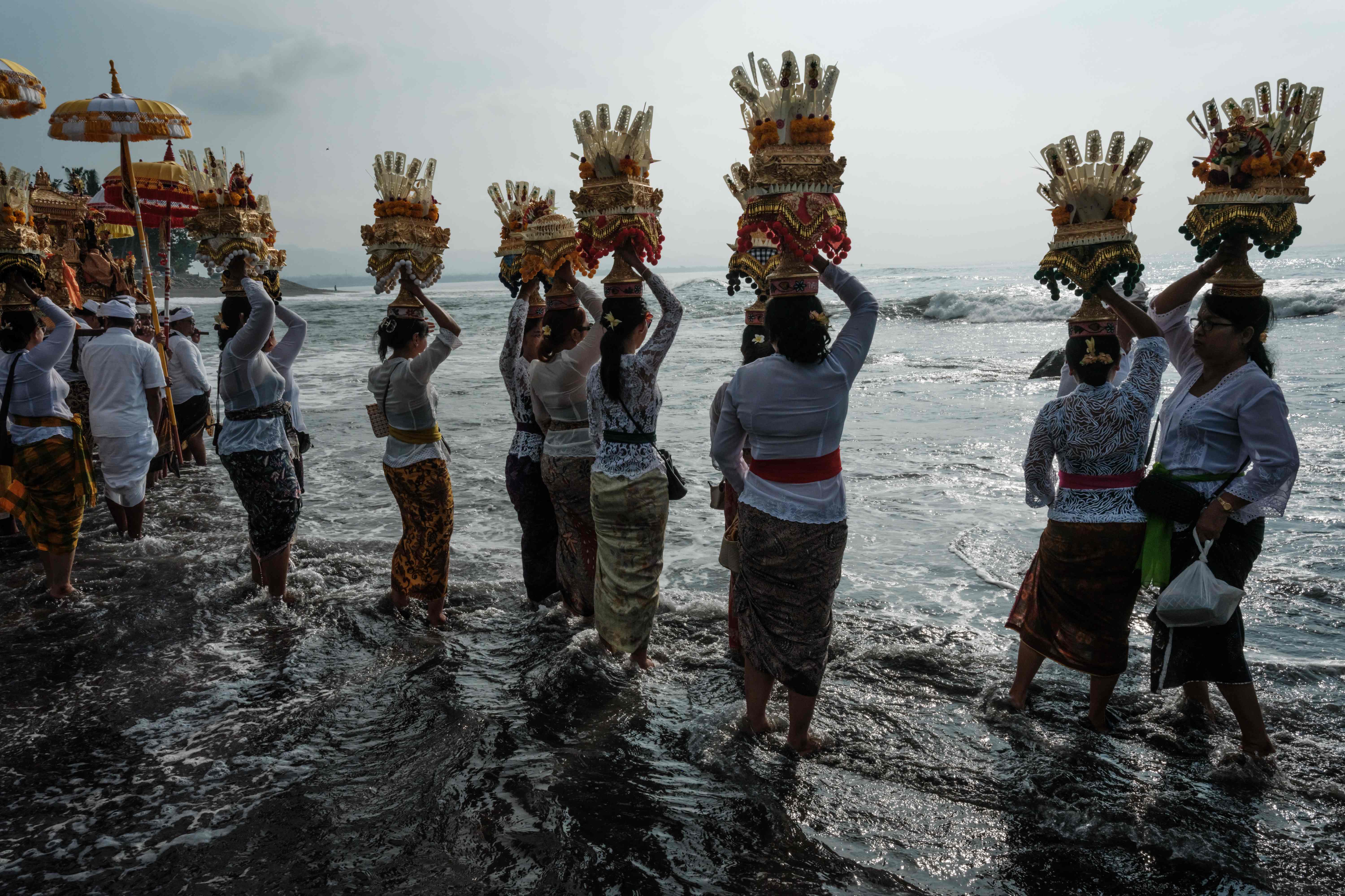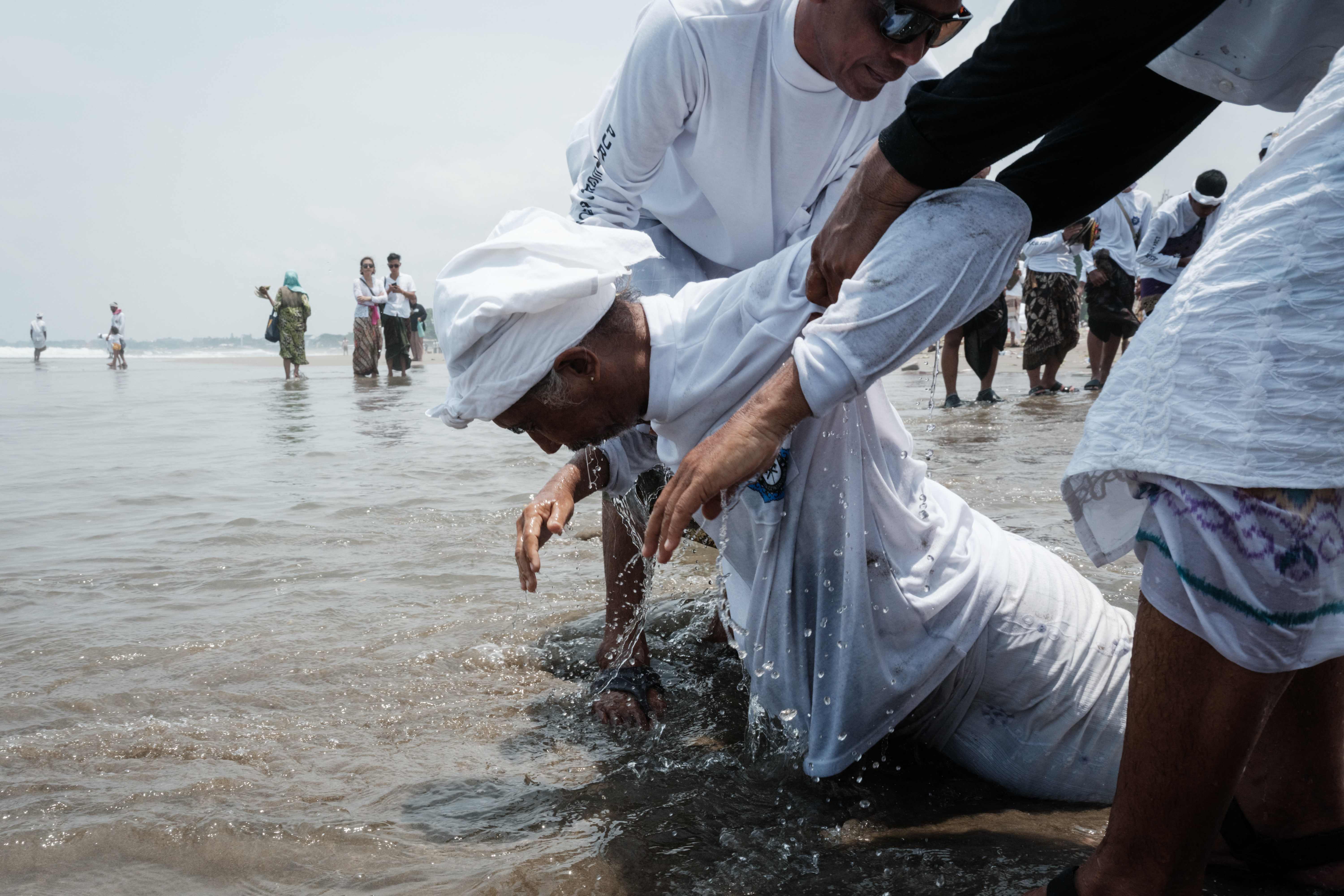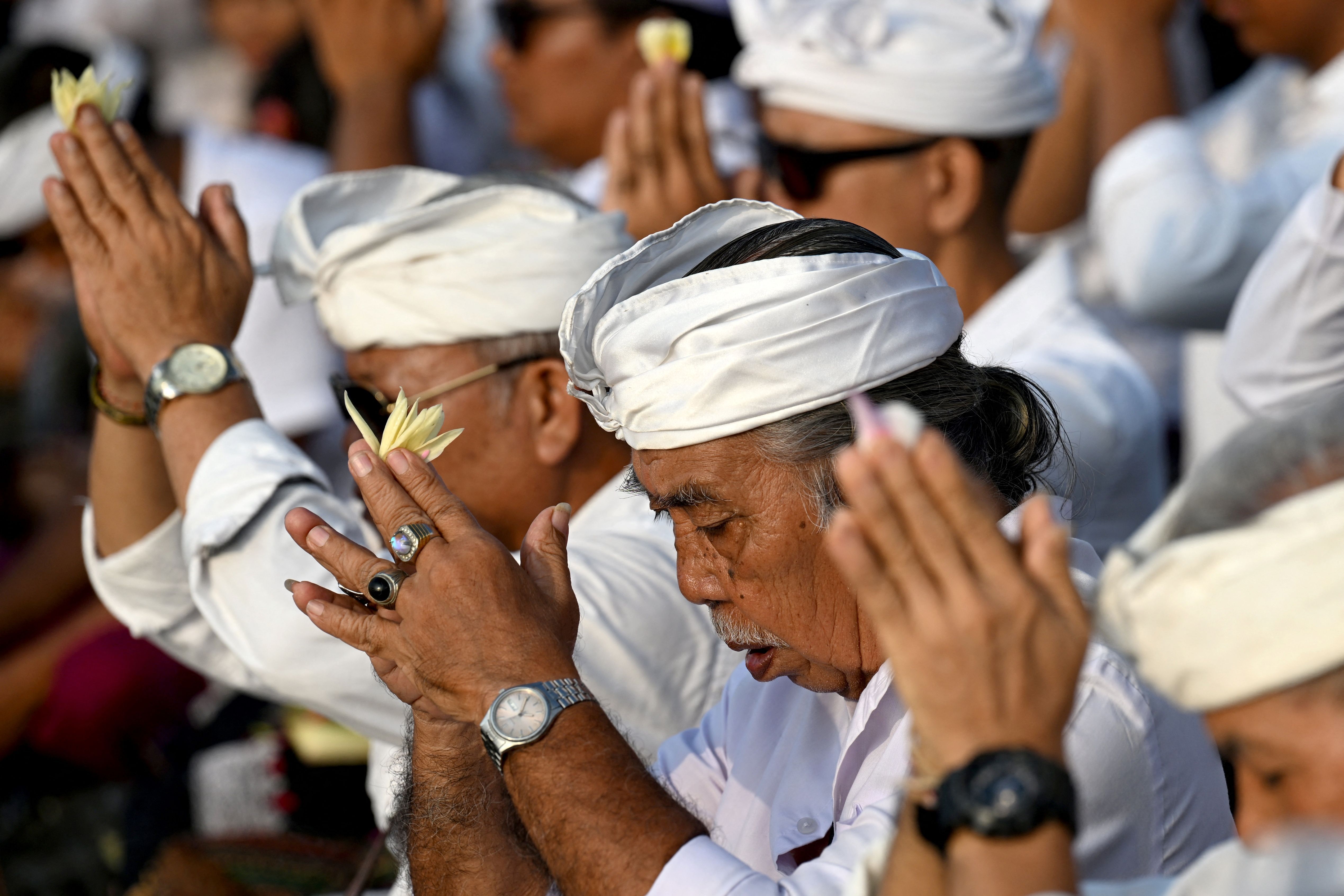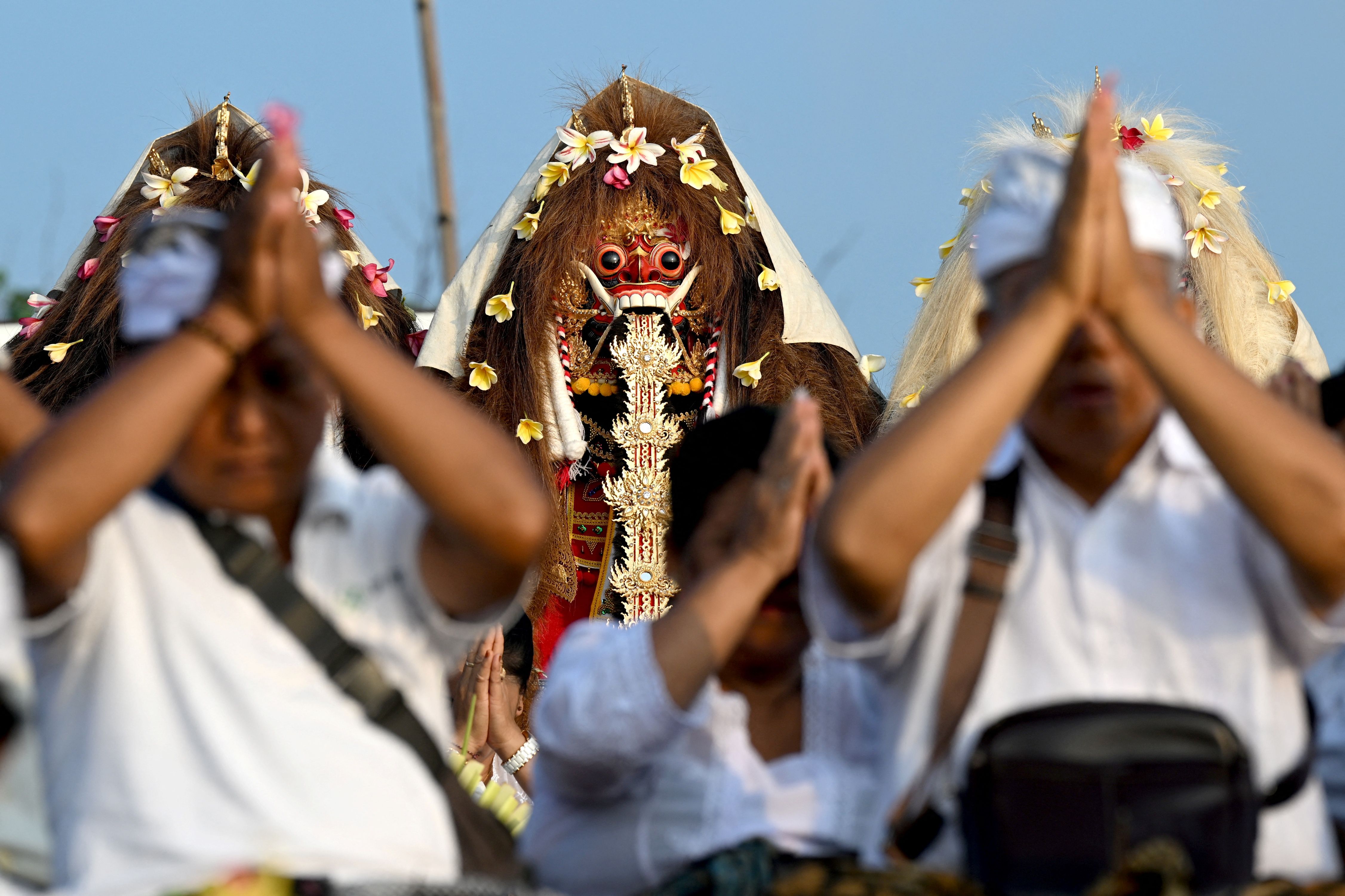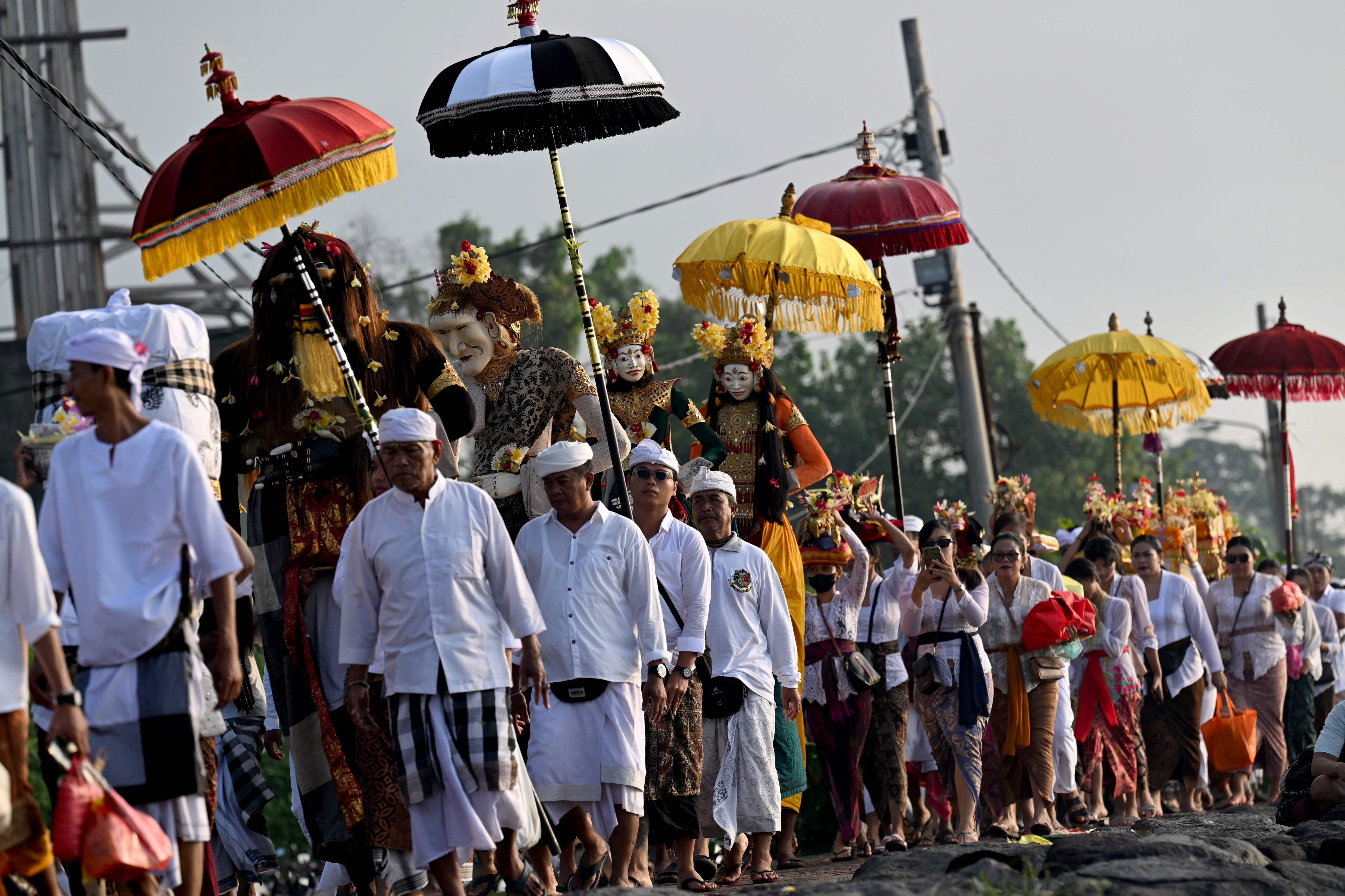 As imagens são da cerimónia numa praia de Denpasar, a capital da ilha indonésia, e são da autoria do fotojornalista da AFP Sonny Tumbelaka.