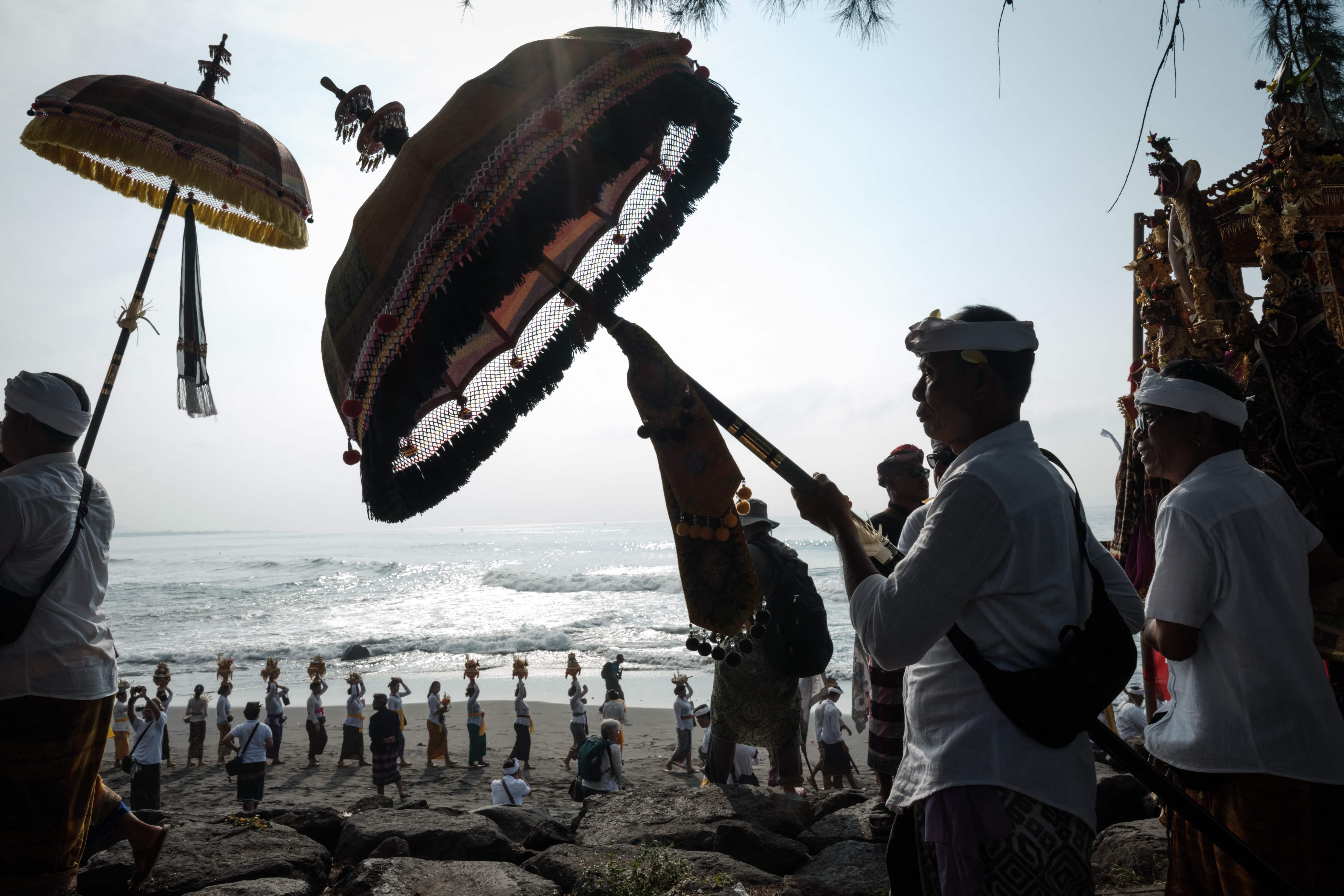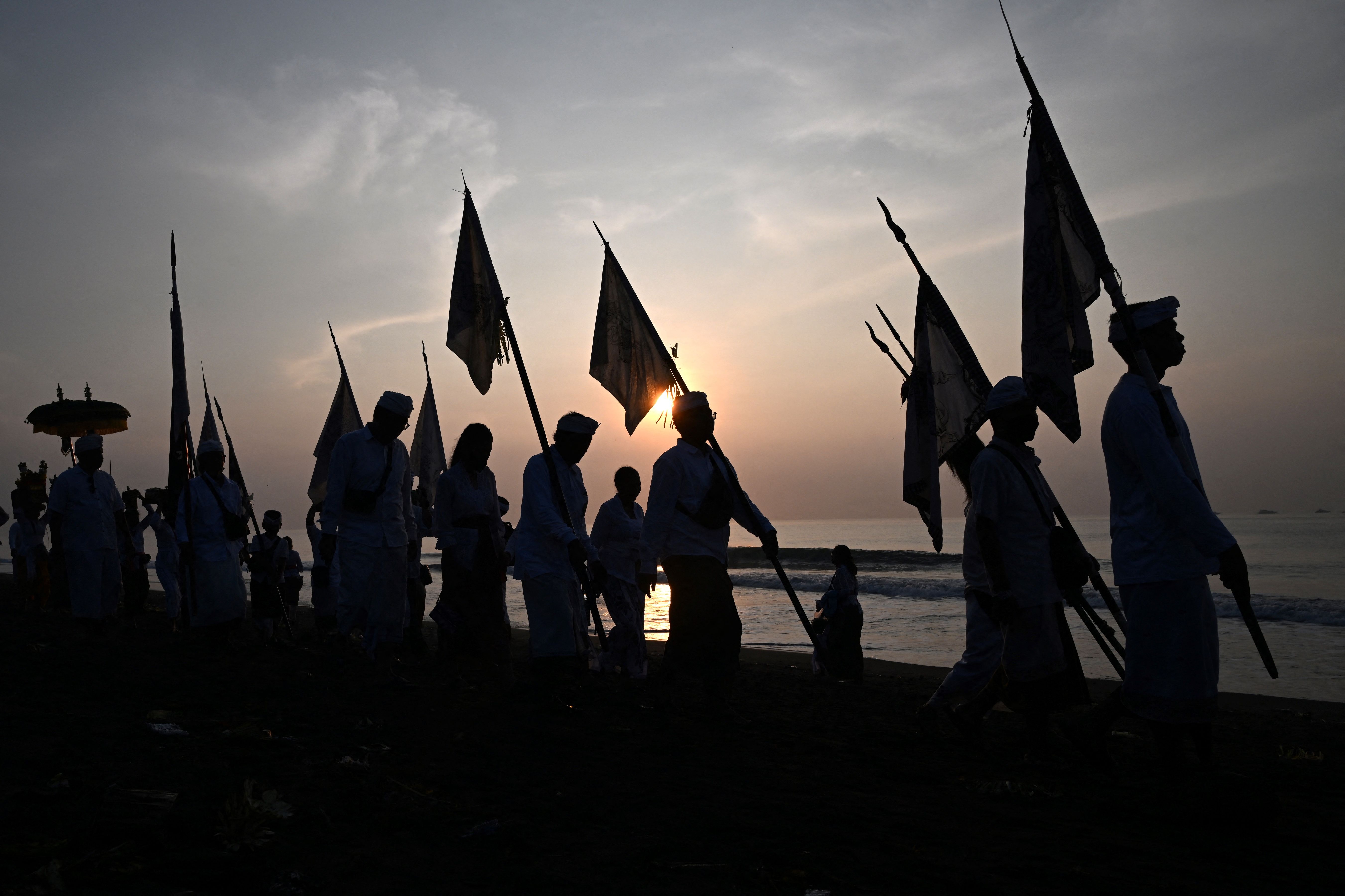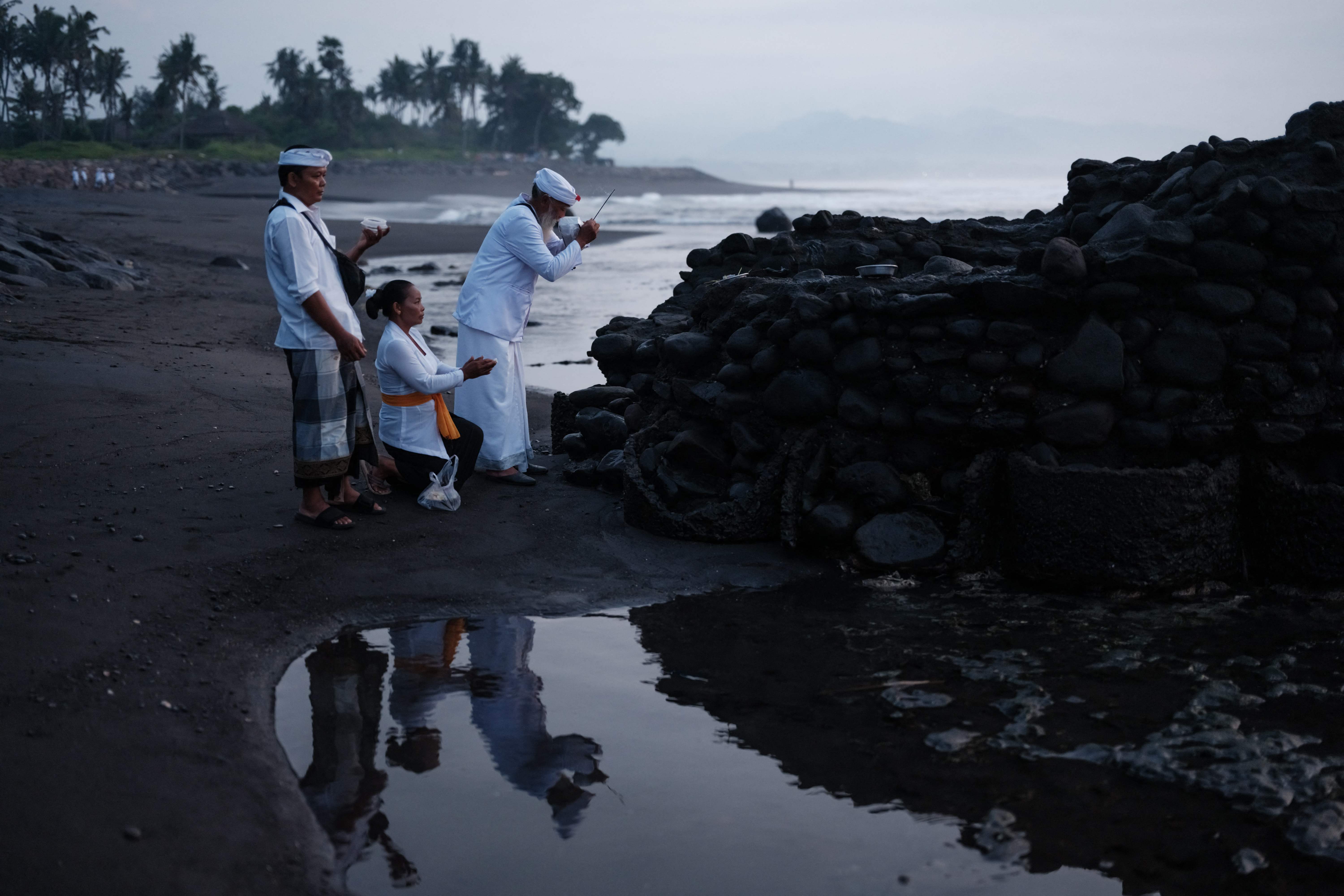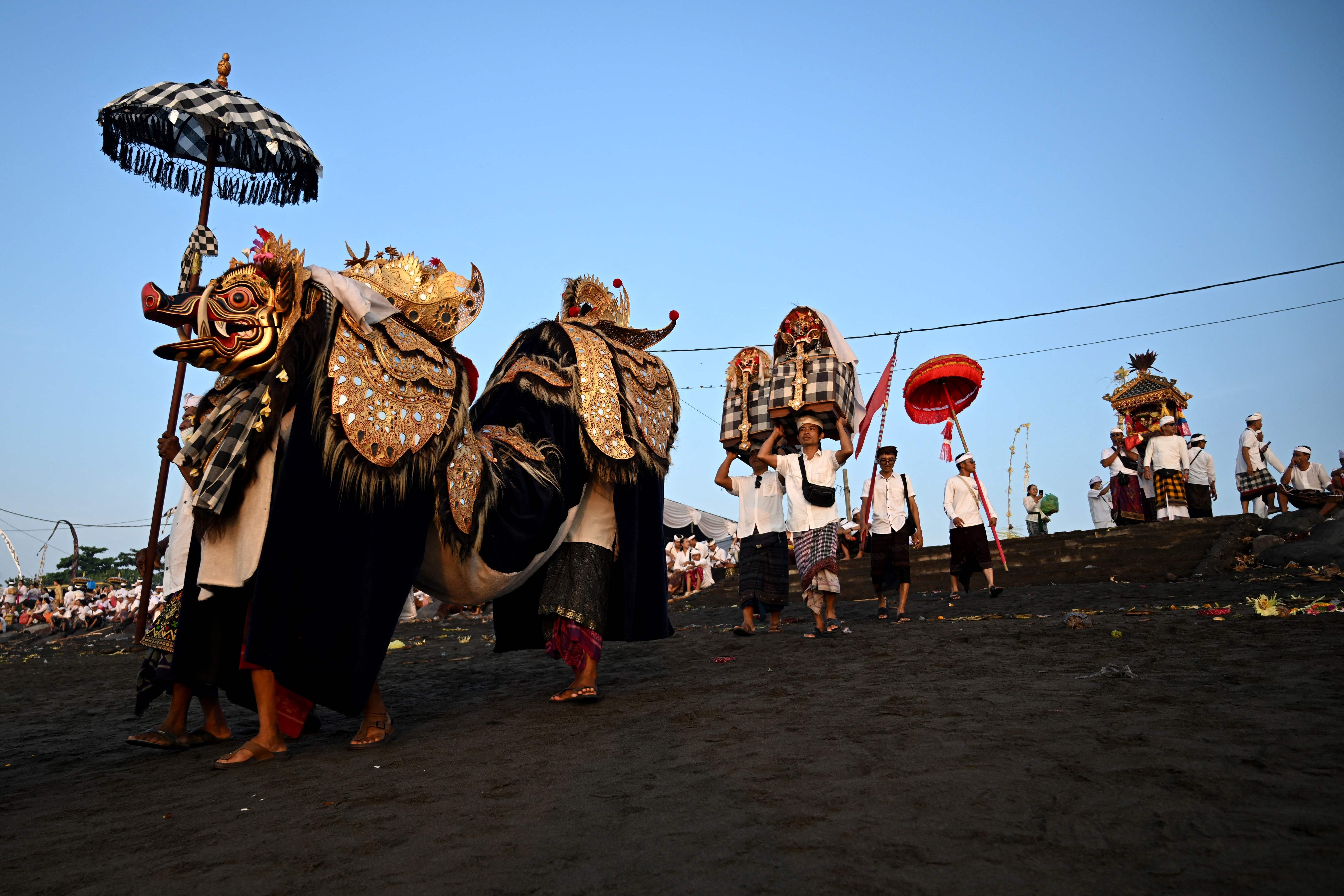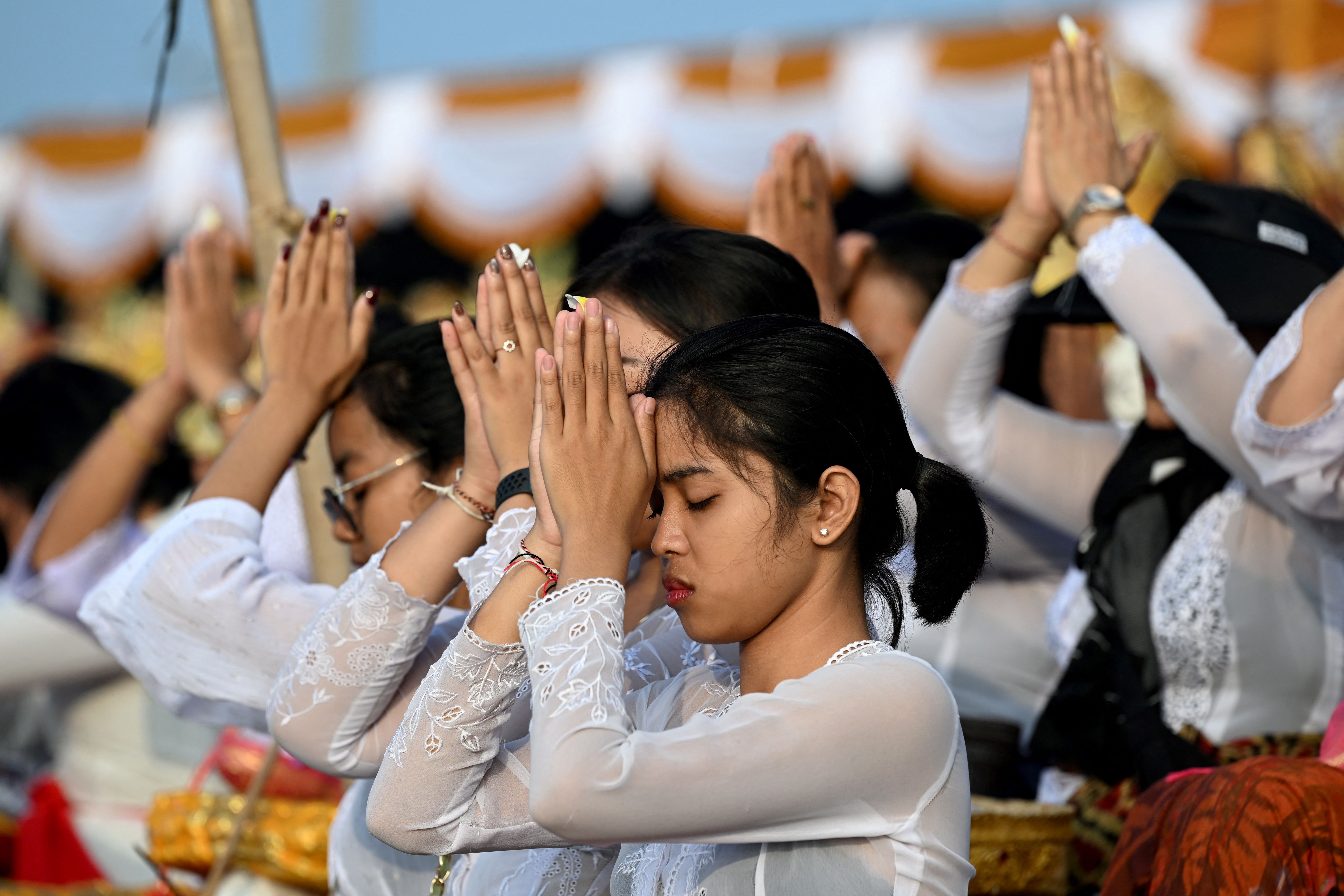 As imagens são da cerimónia numa praia de Denpasar, a capital da ilha indonésia, e são da autoria do fotojornalista da AFP Sonny Tumbelaka.