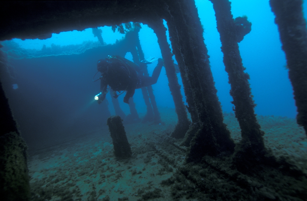 para mergulhadores de todos os níveis descobrirem rochas cobertas de coral, a fauna marinha local e o jogo de luzes criado pelos raios de sol. Na mesma zona, a 35 metros da superfície, está o que resta do UM Faroud, um petroleiro libanês de 110 metros de comprimento afundado para funcionar como recife artificial em 1998.