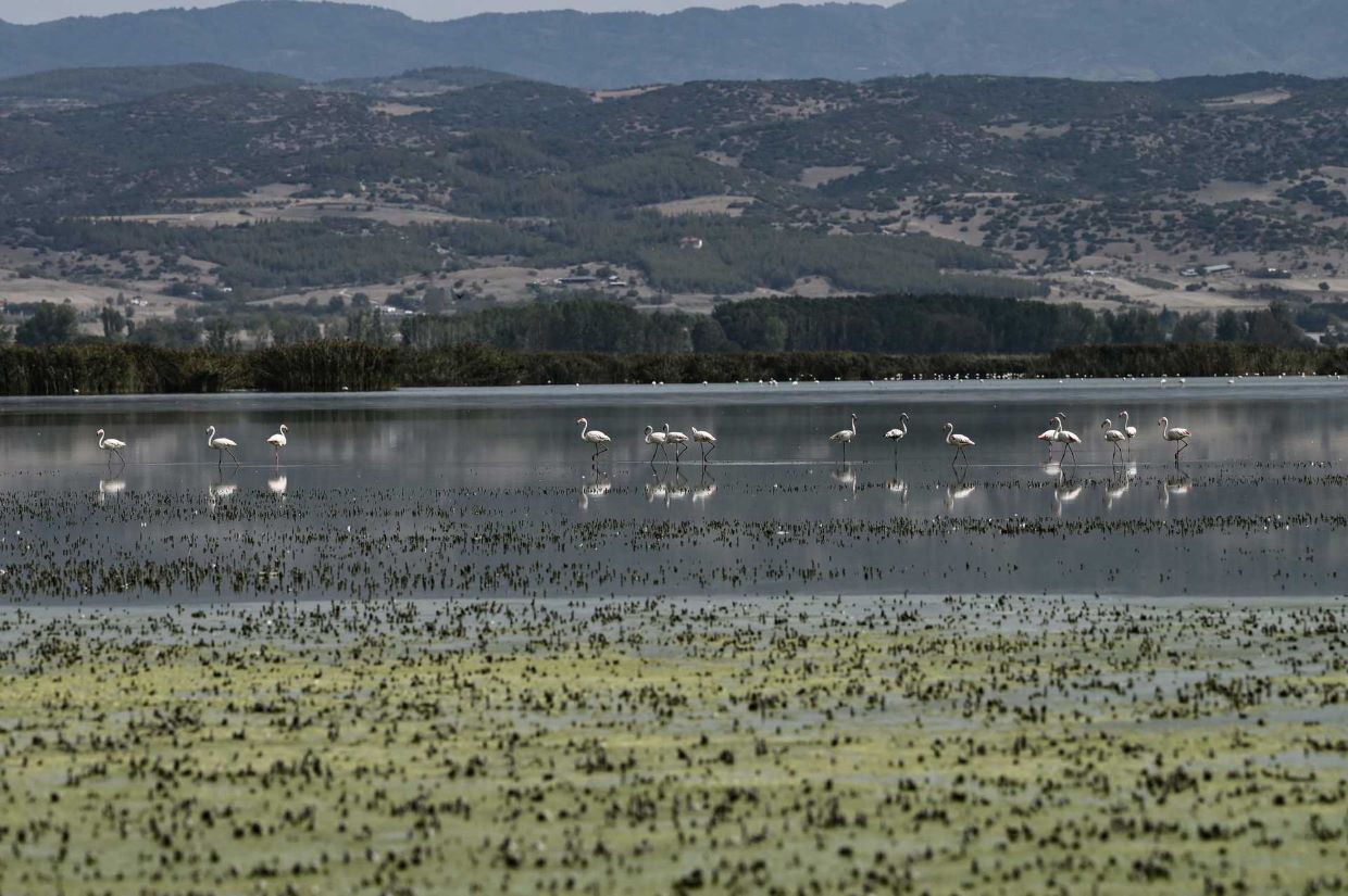 O lago Koronia, um dos maiores da Grécia, está a encolher após uma seca prolongada e um verão de temperaturas elevadas.