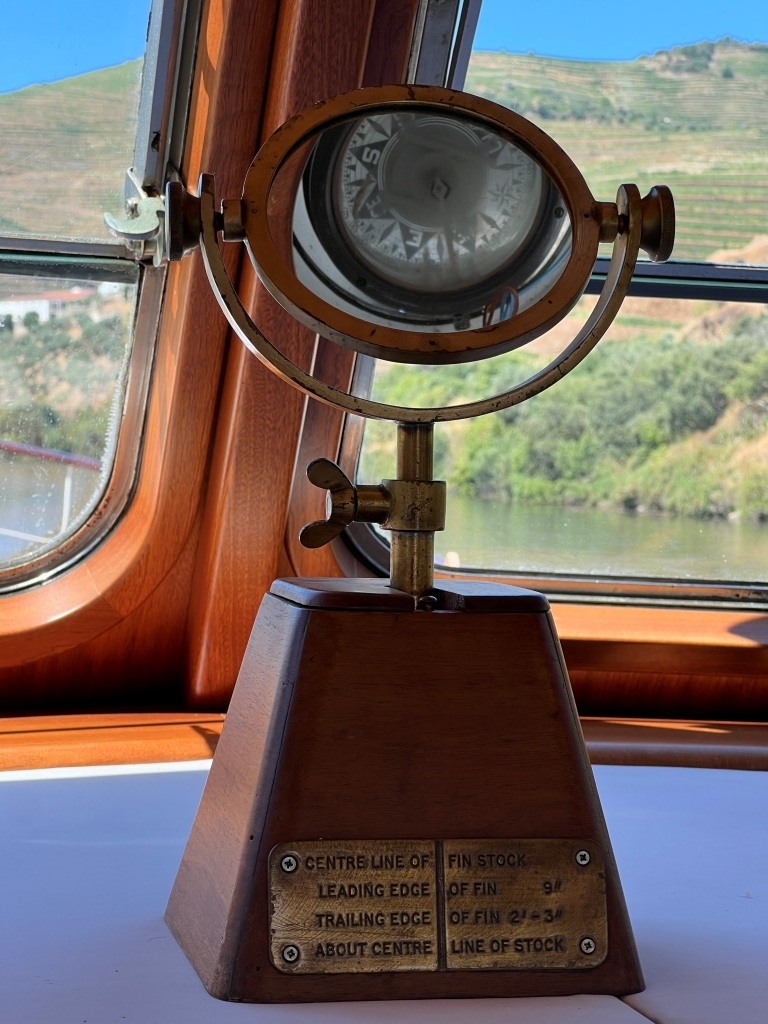 As pratas britânicas, o coffret de barbearia, o leme original e a bússola refletida no espelho de antanho, porque soía estar no teto, afastada de qualquer interferência metálica, e ainda hoje lá está, perfeita a apontar o azimute.