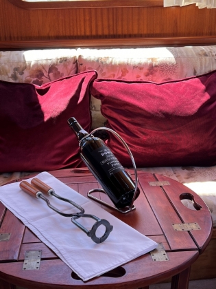 A casa de banho é perfeita e também têm vista, há outra junta ao segundo quarto, que era do capitão, cama single, a cozinha é mais do que suficiente para servir um jantar com curadoria do chef Pedro Lemos, esteja ele incluído no programa, há, imagine-se, uma cave de vinhos, ou não estivéssemos nós no coração do Douro Vinhateiro e não fosse este navio propriedade de homens das quintas.
