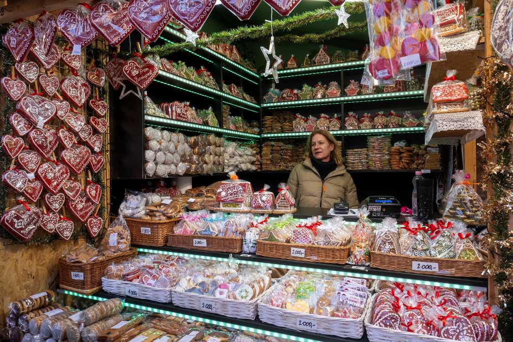 O chocolate quente com chantilly, servido em copos e palhinhas riscados, e os bonecos de gengibre também pululam. Muito instagramáveis. Assim como a sensação de engano crescente, ao constatar que não se consegue encontrar os biscoitos vendidos em Portugal como húngaros. “Sim, sabemos o que é, mas isso é comida que as avós fazem em casa, nas aldeias, umas bolachinhas que depois mergulham em chocolate”, diz secamente Ilona, vendedora, perante a pergunta considerada picaresca.