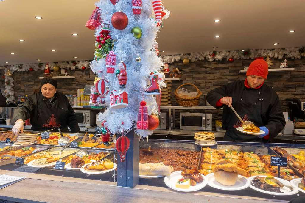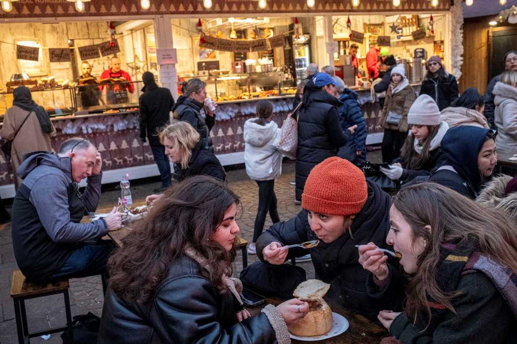 Além da poesia, se procura algo tradicional, encontrará iguarias típicas como couve recheada com carne, goulash, polenta, pernil e uns cachorros quentes padecentes de gigantismo. Há também langos, uma massa de pão frito amassado, cruzamento entre massa de fartura e pizza que serve como prato e tanto vem recheada de iguarias doces como salgadas. Acompanhe-se com o vinho quente com especiarias, herança romana da celebração do Solstício de Inverno.