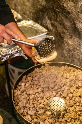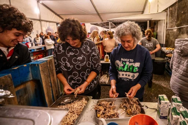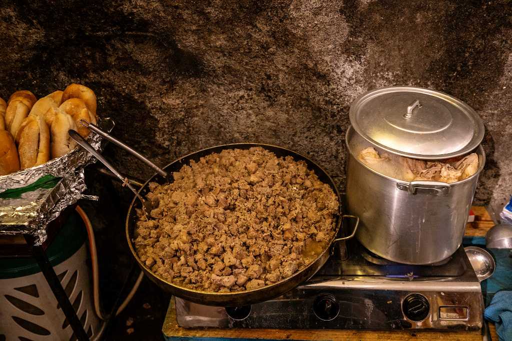 Há cacau quente, sim, mas há poncha. E há sandes de vinha-d’alho e de fios de galinha desviados da panela preparada para ornamentar a canja. Porque há canja também. E cacau, a nosso ver, casa pouco com tudo isto. É o resultado de uma semana de trabalho do agrupamento de escuteiros da paróquia, que se traduzirá, ao longo de nove dias, em perto de mil quilos de carne em vinha-d’alho, 30 quilos de carne de frango, 200 litros de poncha. Sim, admite Luís Sousa, que gere os trabalhos, é pouco, mas a polícia está aí na curva (já nos tinham avisado quando enfiámos o primeiro trago da famosa bebida madeirense).