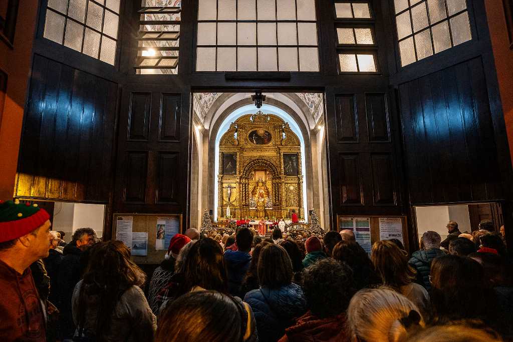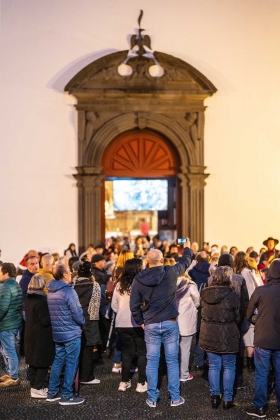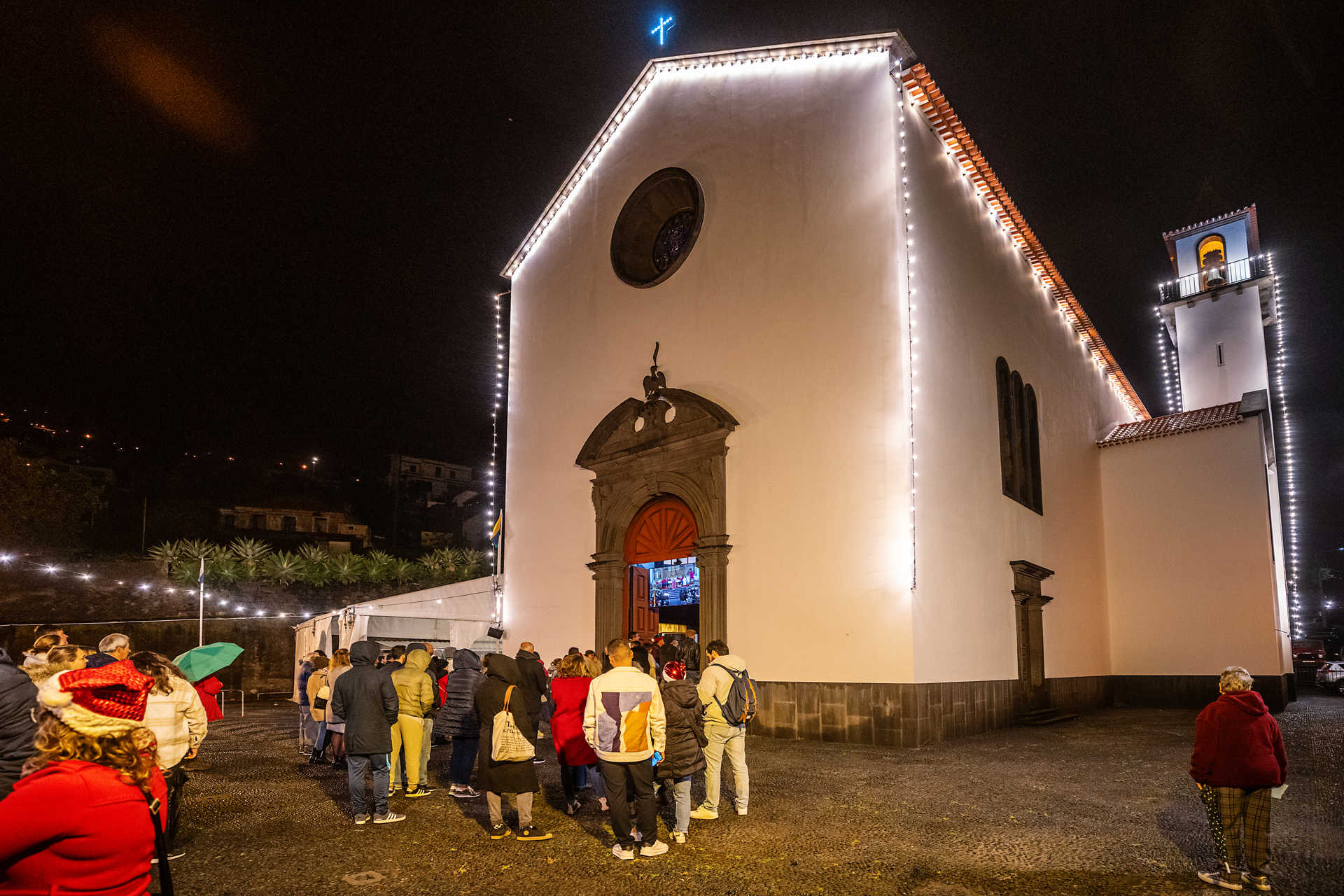 As luzes azuis e vermelhas das árvores disfarçam a escuridão, hoje não há estrelas no Funchal, apenas pontos de luminosidade nas várias igrejas, todas com a sua missa do parto, que é a isto que vimos. É a primeira de nove, uma por dia até às vésperas do dia do nascimento de Cristo, a simbolizar os nove meses de gestação de Maria. Altura de celebração da vida de Cristo, mas sobretudo da nossa, das gentes. Porque missa, aqui e agora, é comida e bebida.